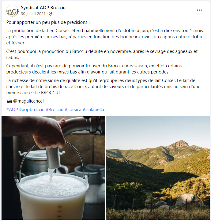Facebook du Syndicar AOP Brocciu