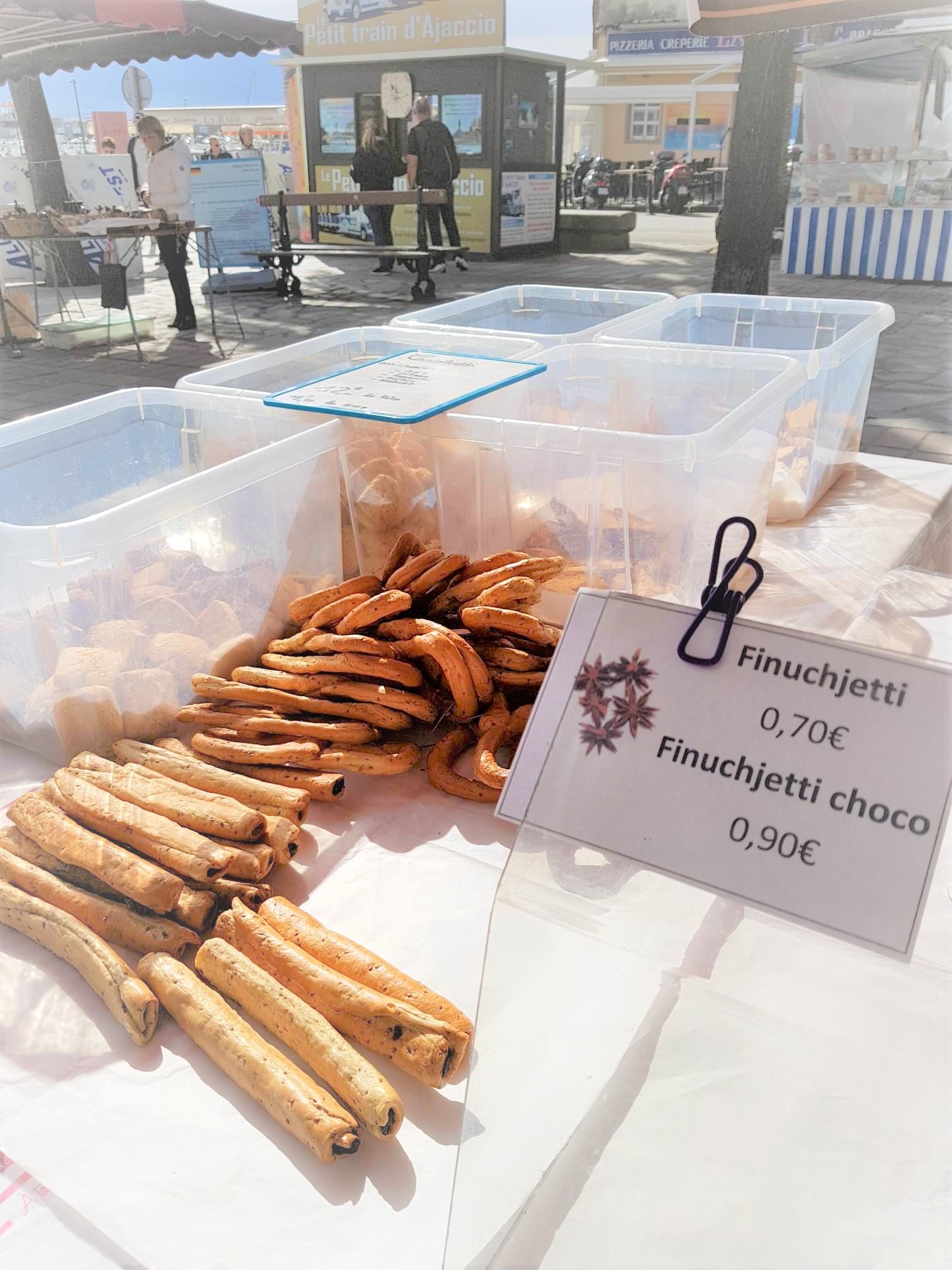 - Les finuchjetti : ce sont des pains fins et secs en forme de huit (ou non) recouverts de grains d’anis de la région d’Ajaccio