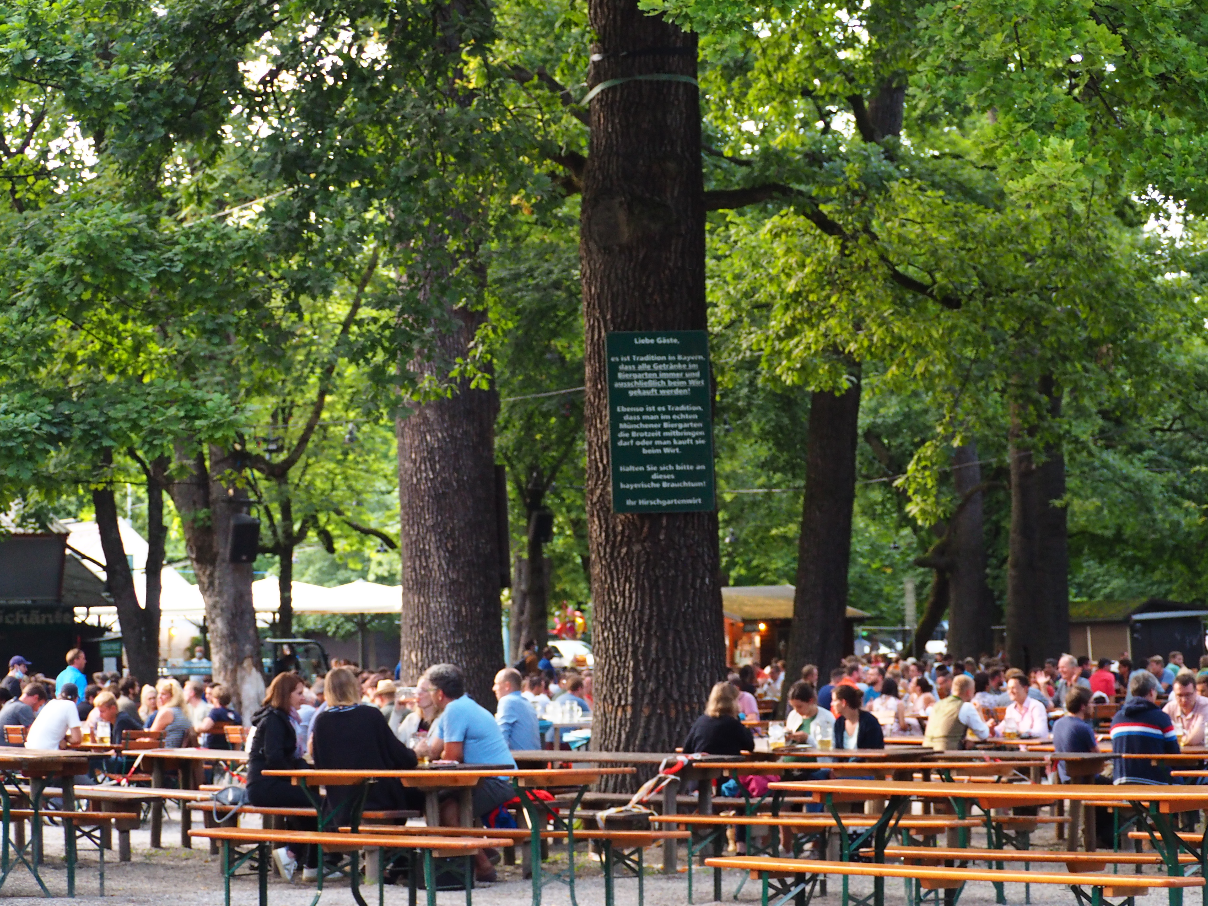Hirschgarten, un très grand biergarten, situé juste à côté du parc aux cerfs. Dans l’enceinte vous trouverez le restaurant Königlicher Hirschgarten mais aussi des espaces où vous pouvez boire tranquillement votre bière tout en consommant dans les stands alentours si vous voulez ! Trois marques de bières fournissent la bière à ce biergarten : Augustiner, Hoffbrau, König Ludwig.