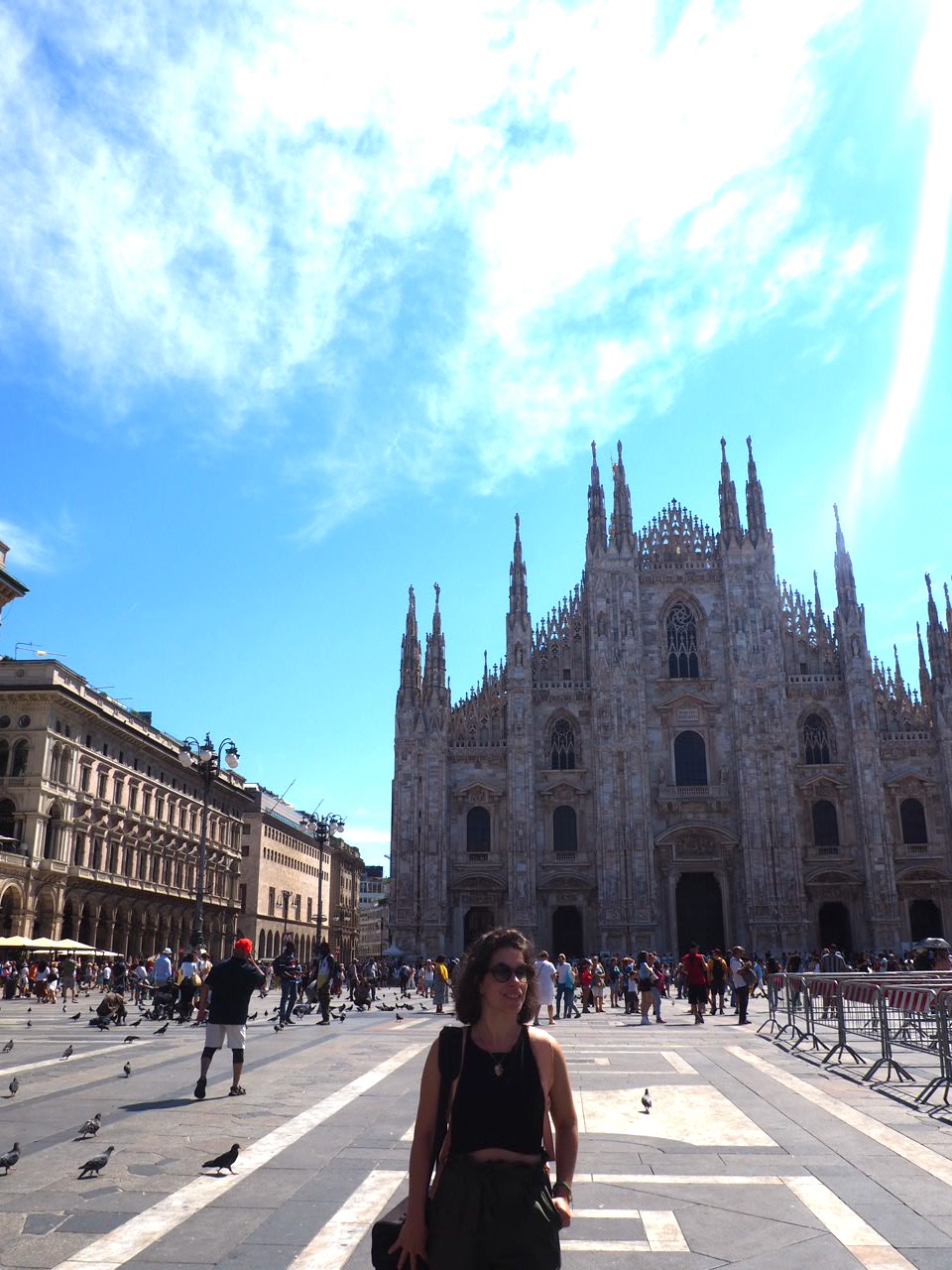 Depuis la galerie, vous apercevez la place du Dôme. Sur la gauche se dresse majestueusement la Cathédrale. De style gothique, le Duomo n’en fini pas d’attirer les foules. N’hésitez pas à la visite mais également à aller faire un tour sur les toits du Duomo !