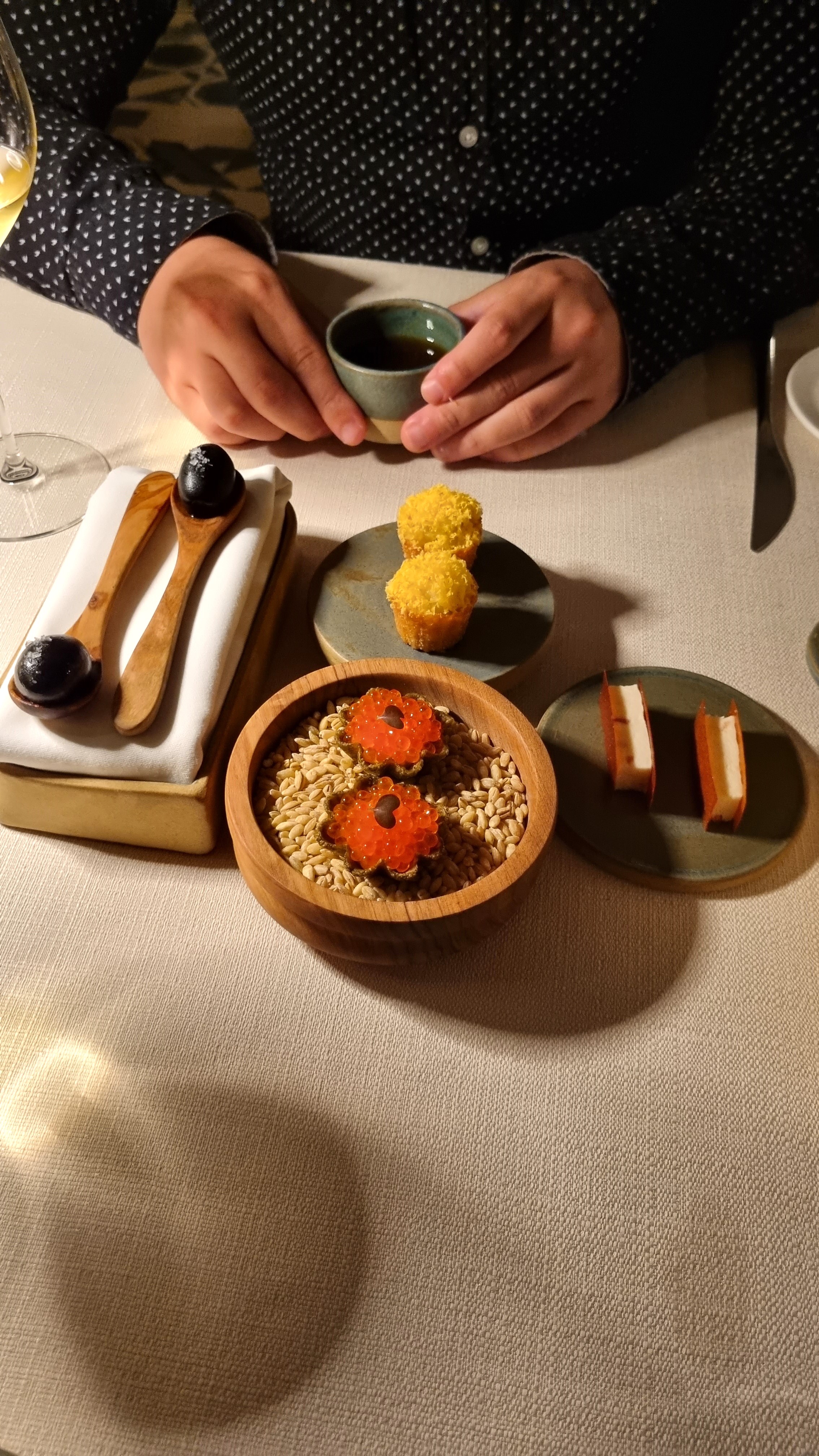 La visite (environ 20€ pp) dure 1h et comprend une dégustation de 4 vins accompagnés de très bons petits mets apéritif. On a eu de la chance car on était seulement tous les 2 !