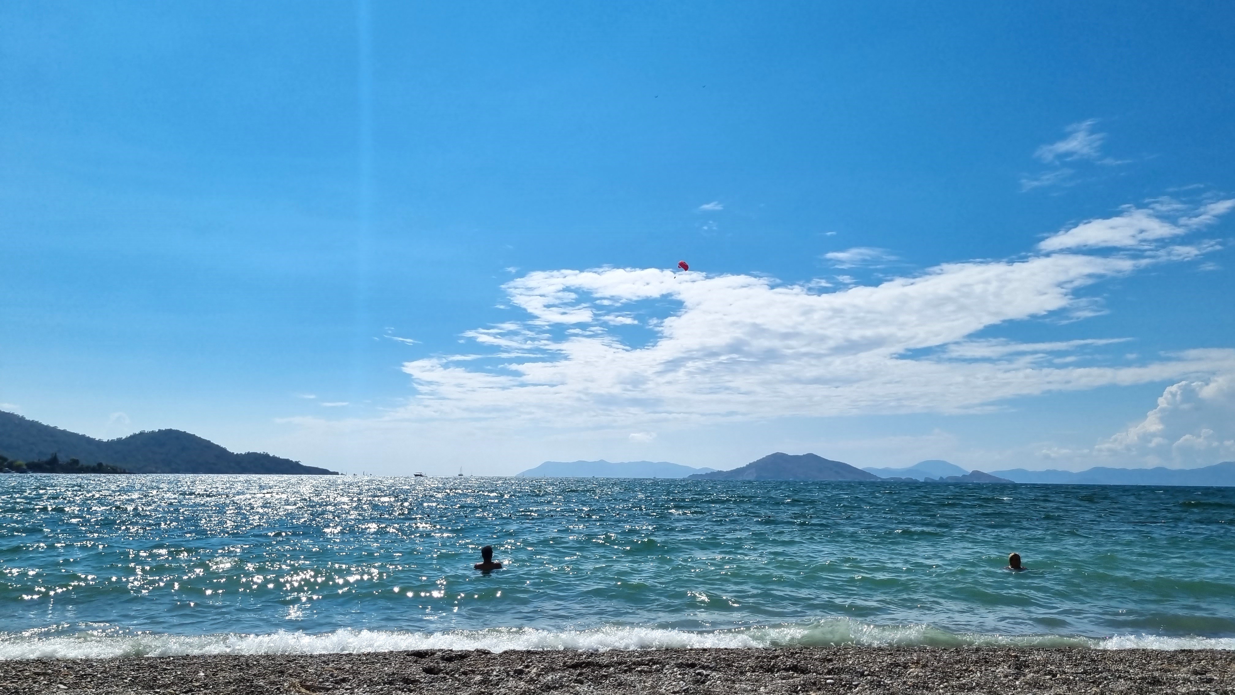 ⛱️ Calis beach, plage de galets près de notre hôtel, avec vue sur la baie