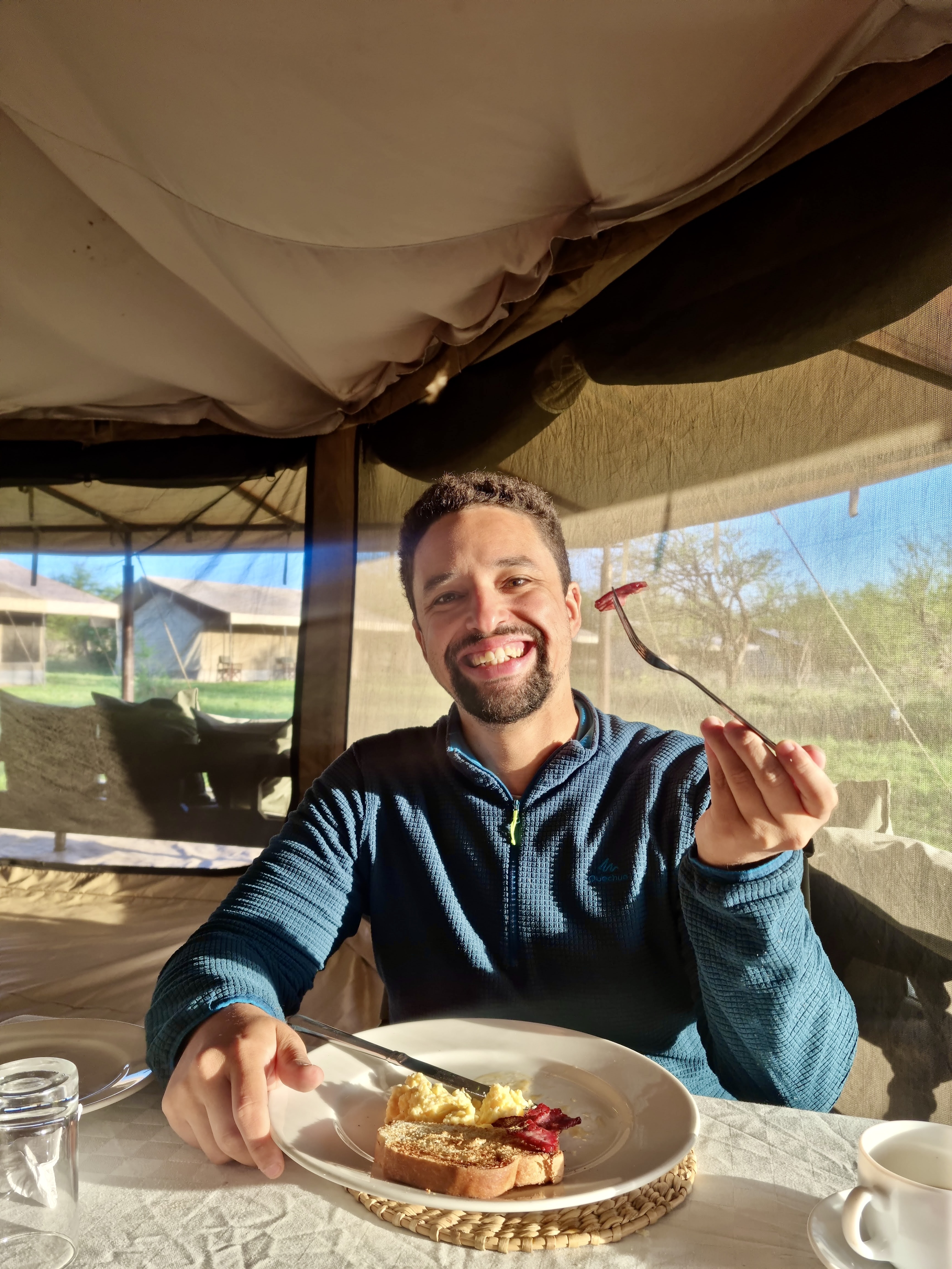 - Des jumelles ! On a pris des jumelles au rayon chasse chez Decathlon, Solognac 10X42 (100m). Cela suffisait amplement, sauf peut être pour voir le rhinocéroce qui était à des kilomètres et le guépard. Je pense que c’est mieux de prendre des jumelles un cran au dessus 🙂