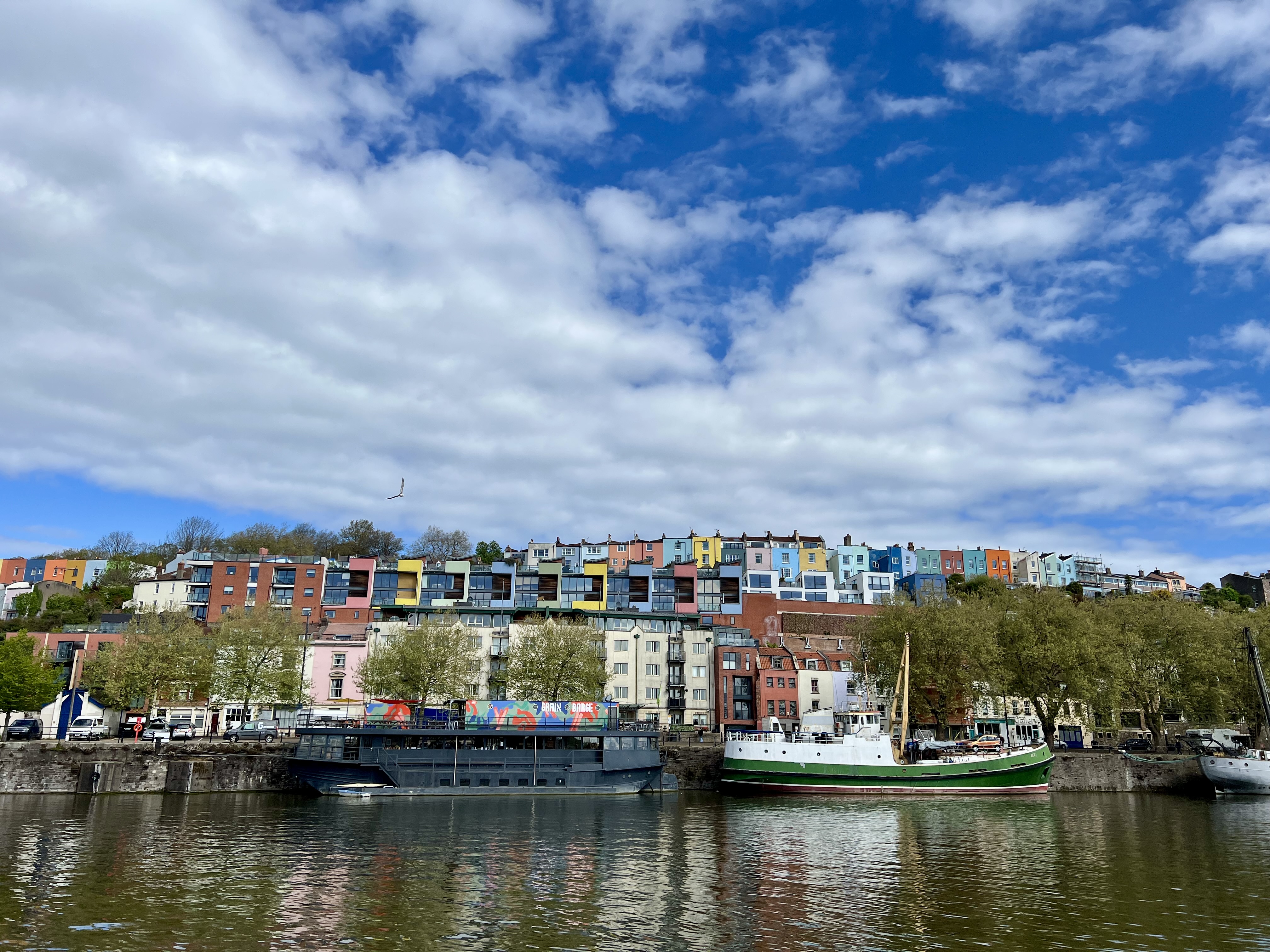 On suit le sentier qui longe les quais de la rivière Avon avec des vues pittoresques sur la ville et le port. Ici, on découvre un tout autre visage de Bristol, ville tournée historiquement autour de l’industrie maritime et des constructions navales.