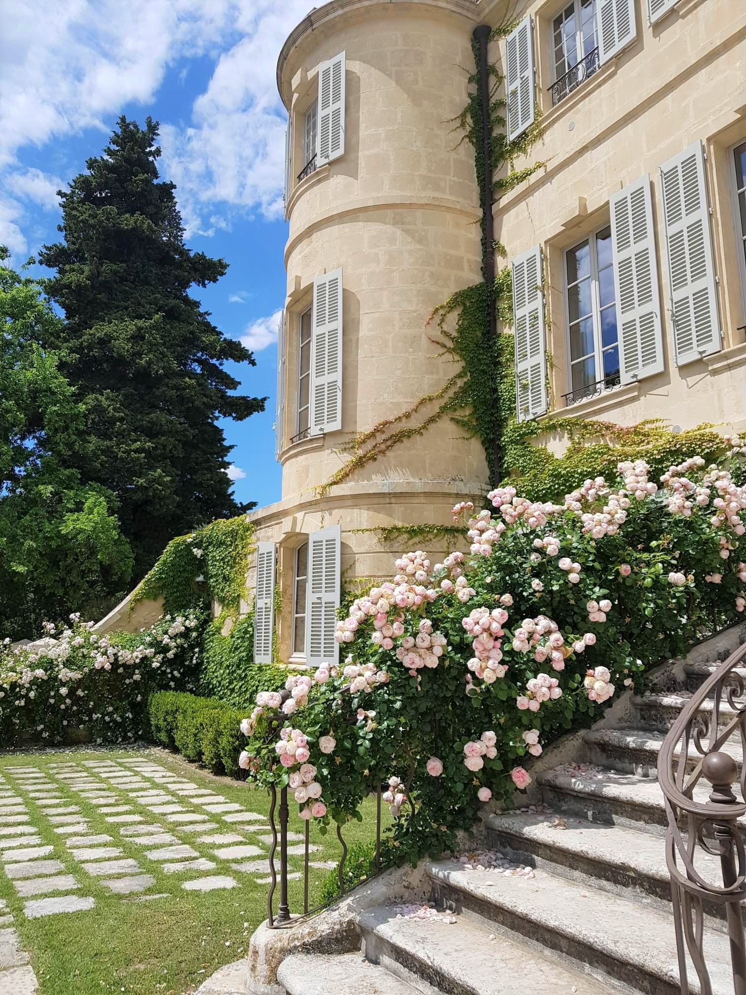 Le château d’Estoublon est surtout connu pour avoir abrité le légendaire feuilleton des années 70 « les gens de Mogador » ! On en a donc profité pour faire un tour dans les jardins, les vignes et les oliveraies. Gros coup de cœur pour le jardin ! Le jardinier s’en est donné à cœur joie avec la plantation des rosiers !