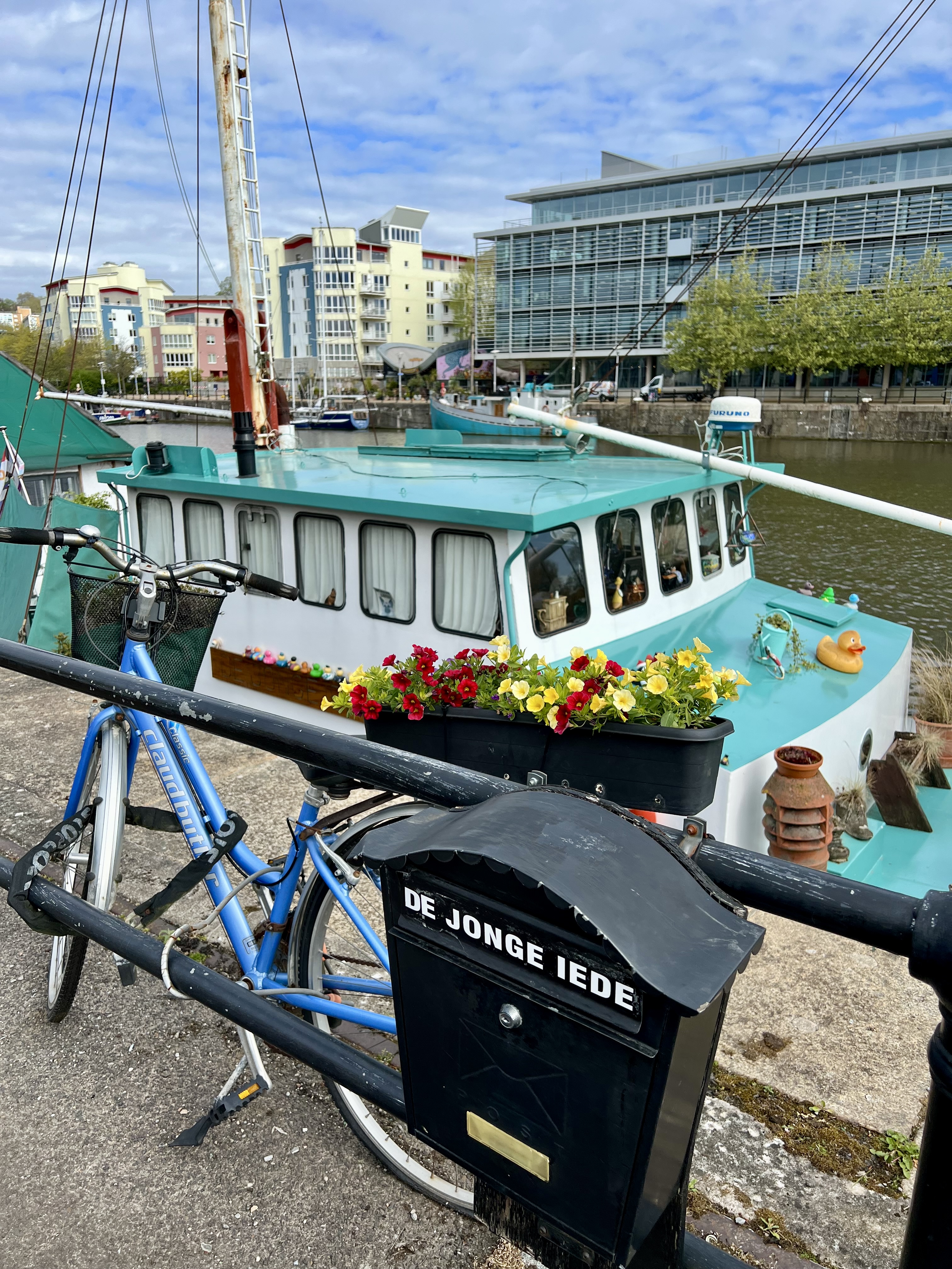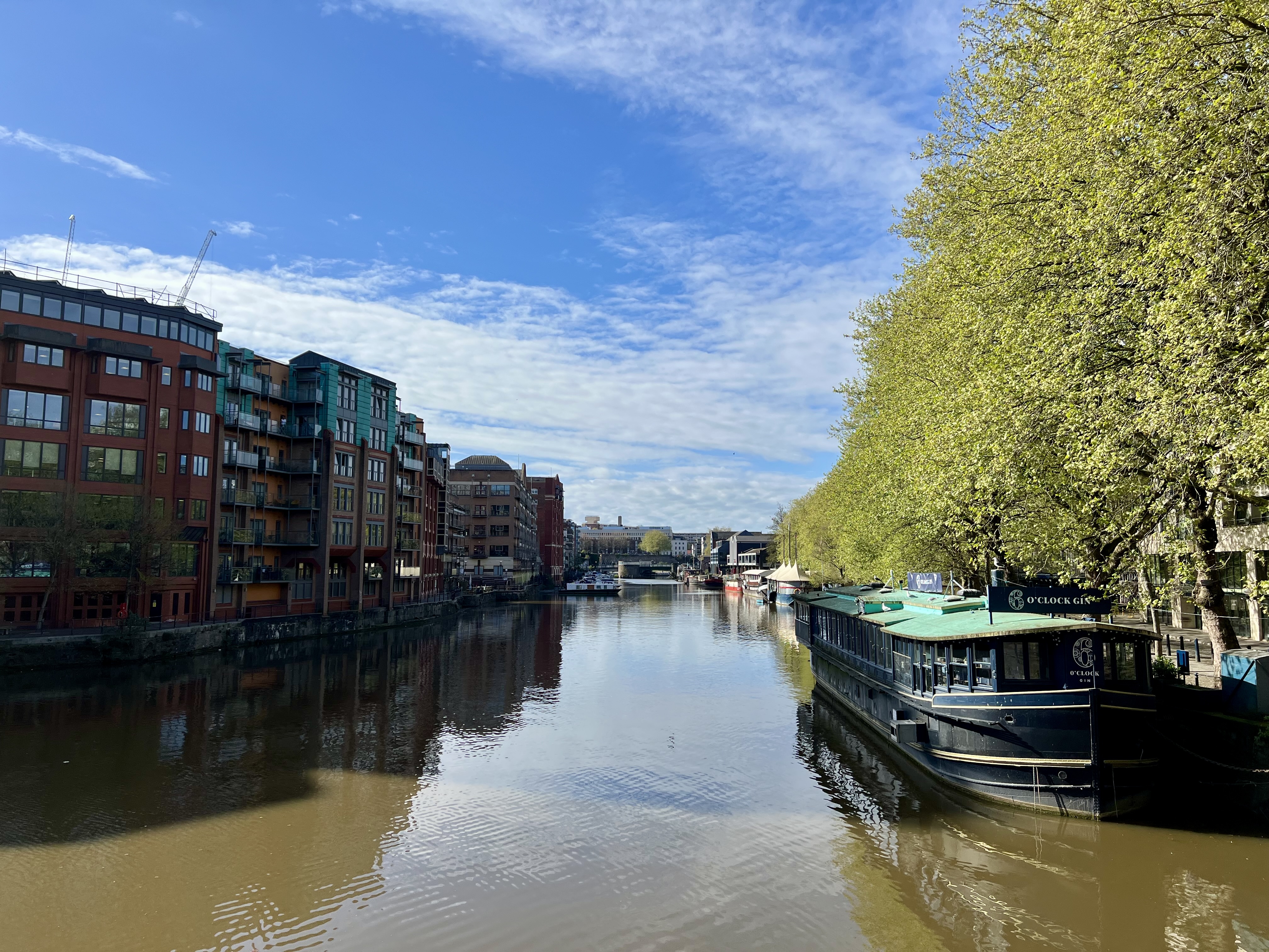 On suit le sentier qui longe les quais de la rivière Avon avec des vues pittoresques sur la ville et le port. Ici, on découvre un tout autre visage de Bristol, ville tournée historiquement autour de l’industrie maritime et des constructions navales.