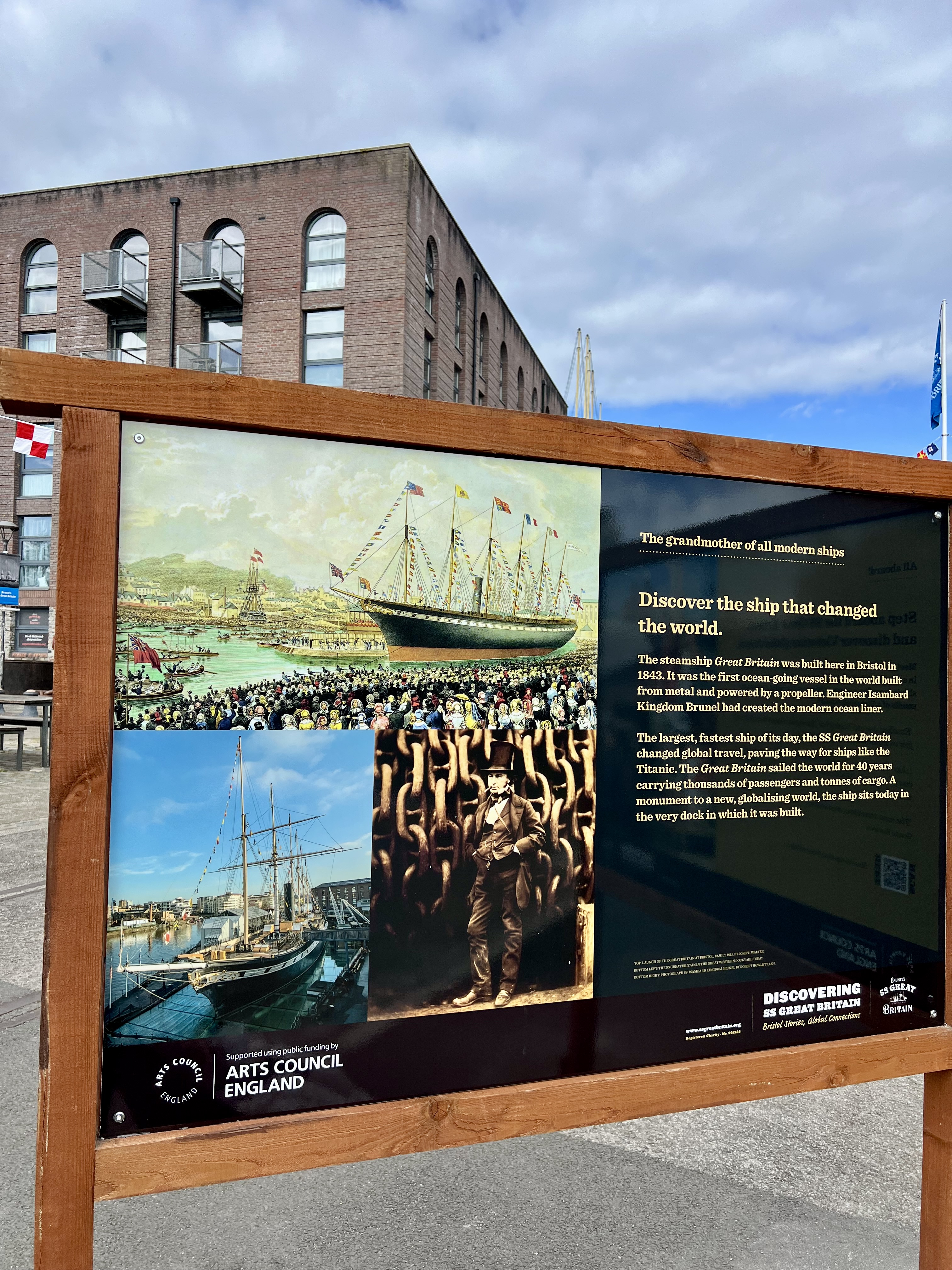 Le SS Great Bristain est un bateau à vapeur construit en 1843 via l’ingénieur Isambard Kingdom Brunel,. C’est le premier paquebot « de haute mer doté d’une coque de fer et d’une propulsion à hélice ». On peut monter à bord et également visiter le musée