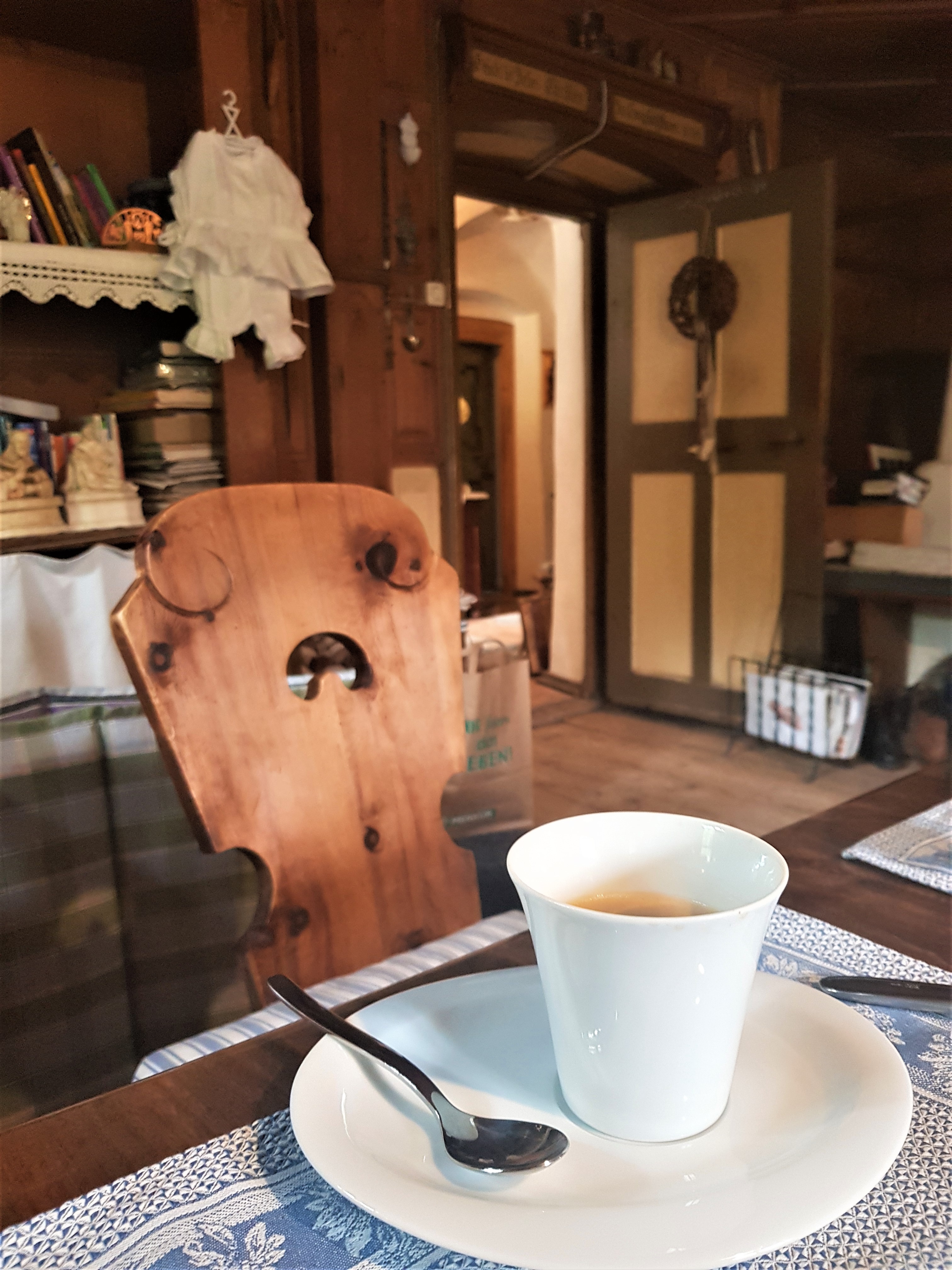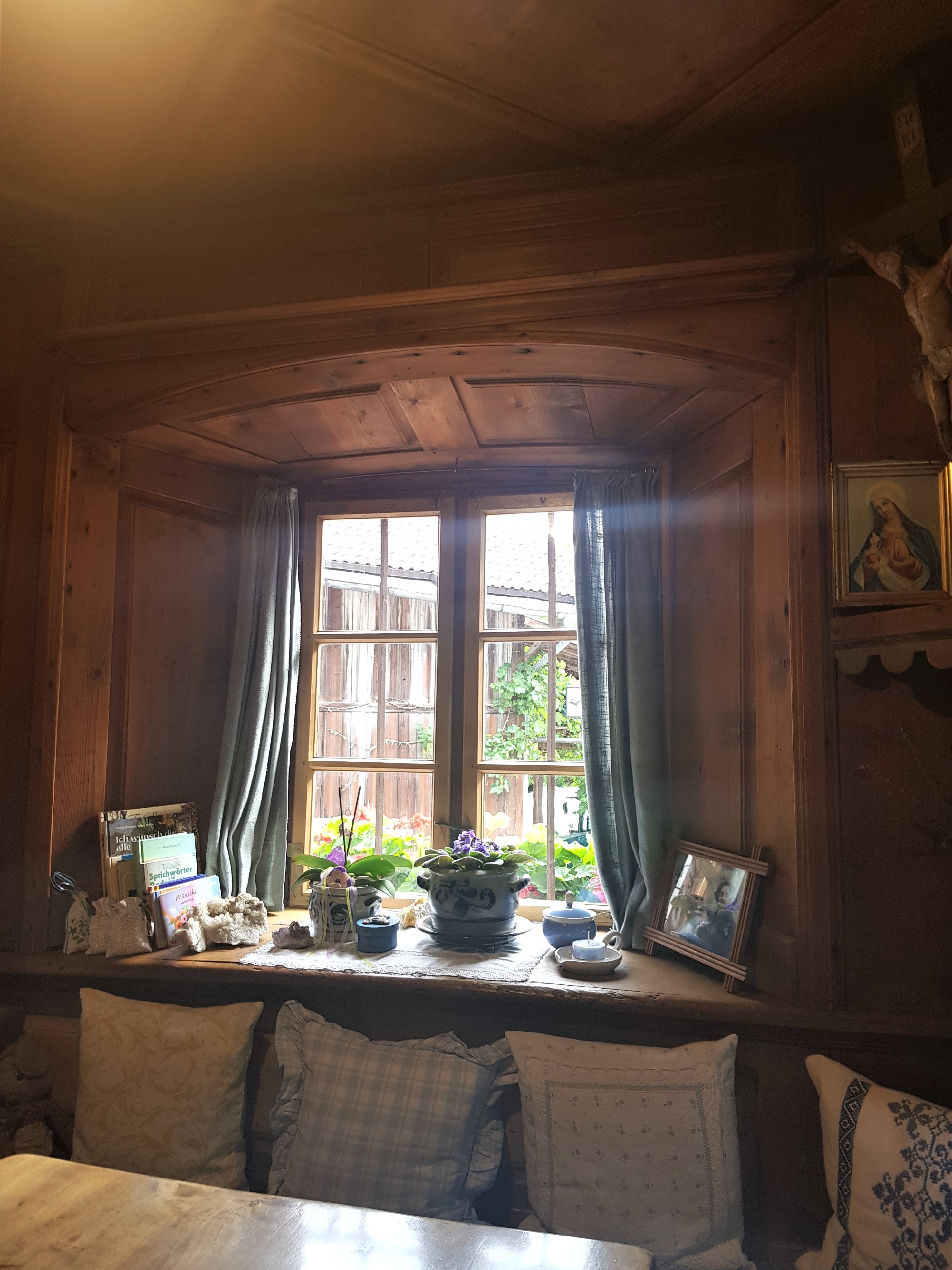 On a eu la chambre indépendante, à la décoration très tyrolienne et le lit et baldaquin. Cette pièce est l’une des parties les plus anciennes de la maison d’hôtes et servait autrefois à faire le pain ! 👉 Maison d’hôtes Adelshof