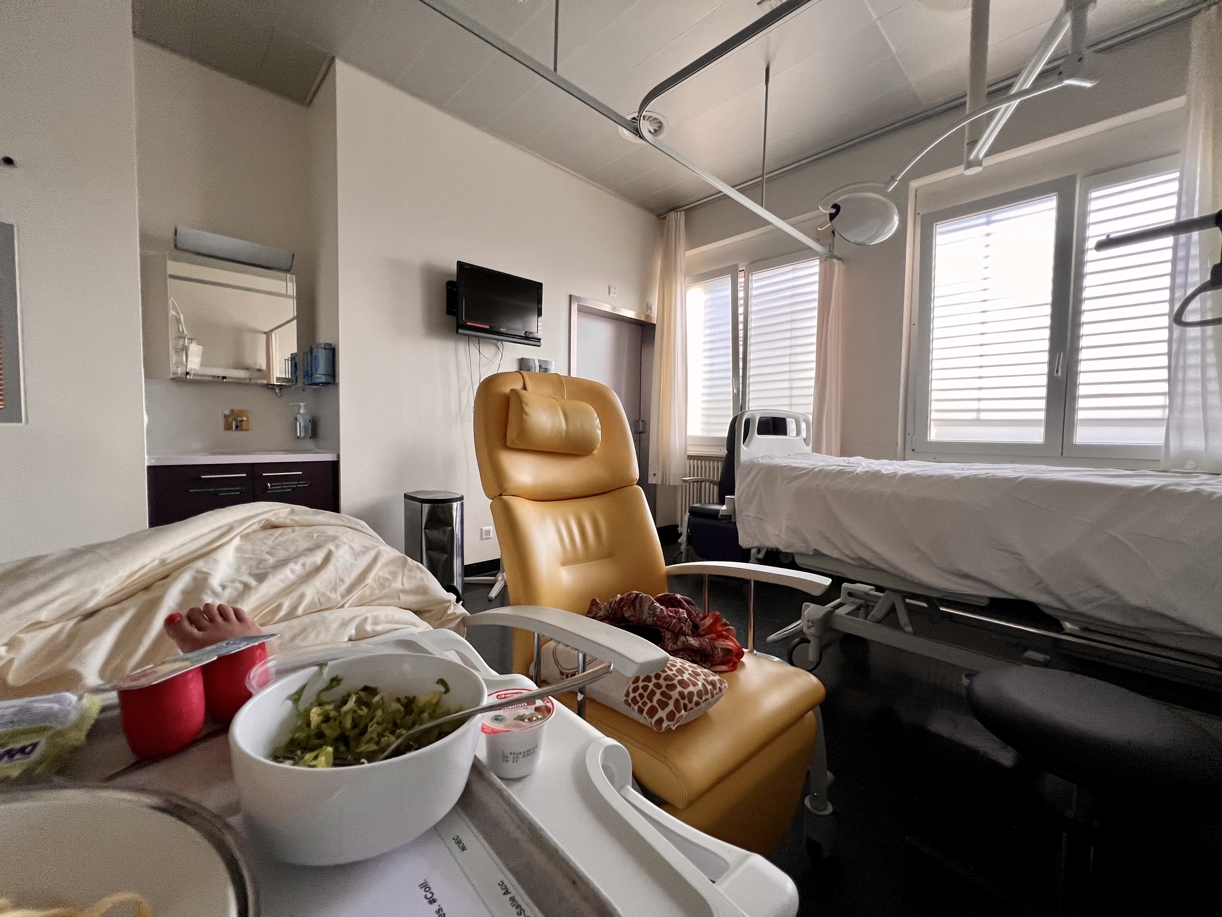 Au CHUV, j’ai pu avoir une chambre seule que mon conjoint avait demandé le jour de la naissance. On a eu de la chance car il restait une seule chambre disponible. Toutefois, avec notre formule assurance maladie basique, le prix était de 200 CHF par nuit (hors repas midi et soir du conjoint; le petit déjeuner est compris pour le conjoint). Pour les HUG, je ne connais pas le prix exact mais c’est beaucoup moins accessible qu’au CHUV si vous avez une formule basique d’assurance maladie. Si votre accouchement se déroule bien, que vous êtes en forme, alors vous pouvez demander, le lendemain, à être transférée à l’hôtel des patients (sous réserve de places) au sein du secteur d’hospitalisation de gynéco-obstétrique. C’est un petit luxe que je n’ai malheureusement pas connu ! Je vous invite à consulter leur site. |