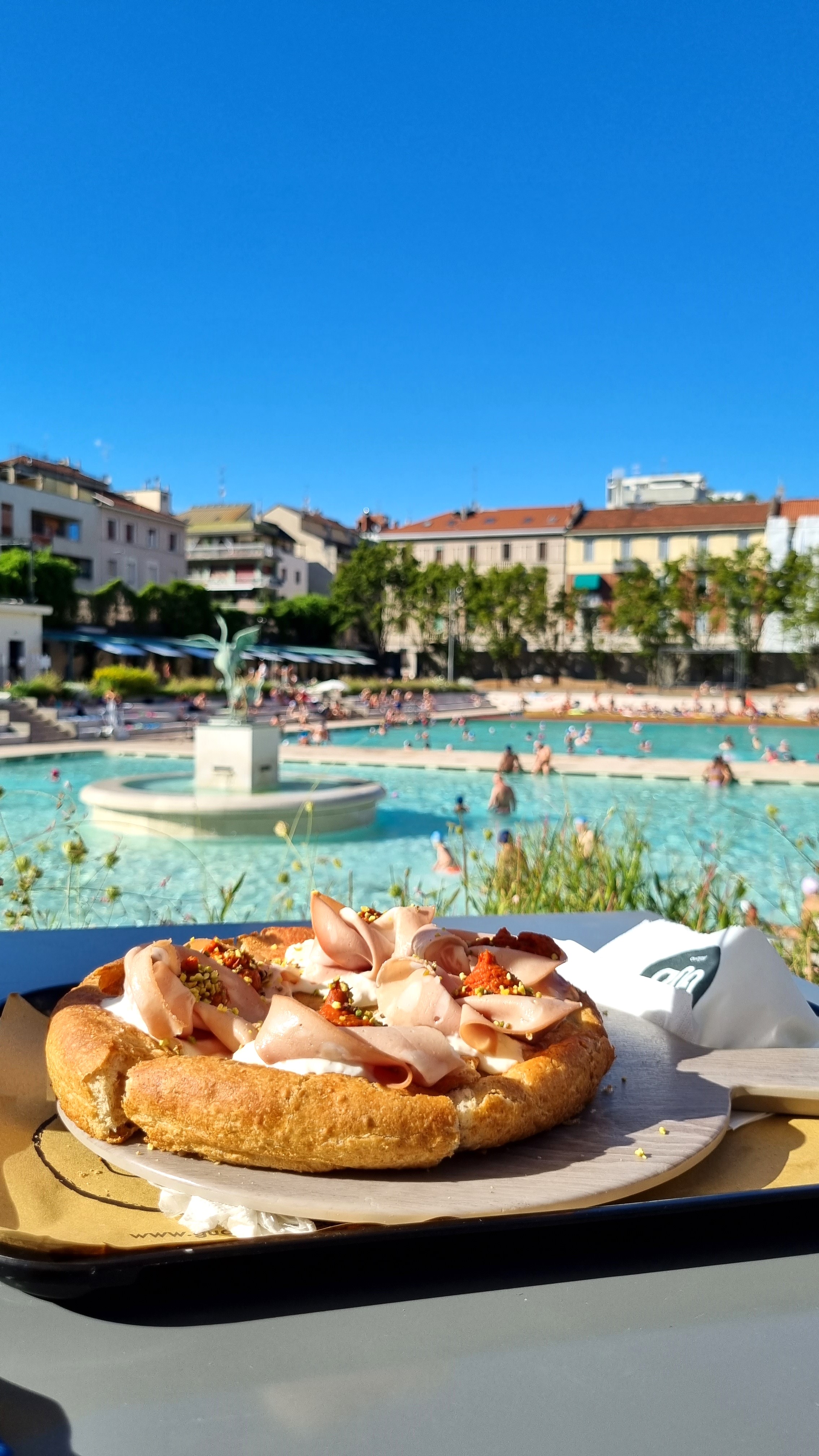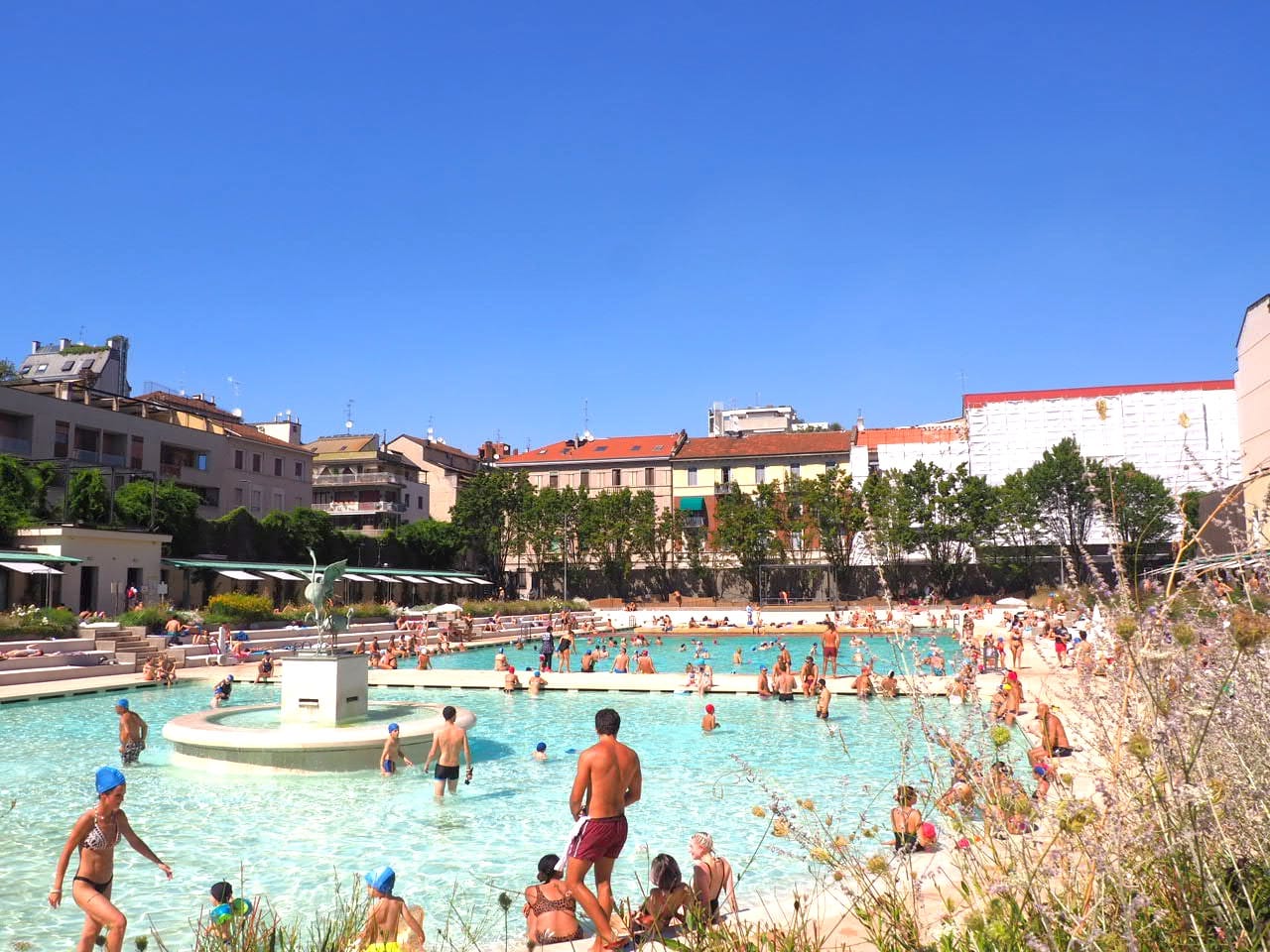 C’est un endroit très très sympa, vite pris d’assaut donc je vous conseiller d’y aller tôt ou d’arriver entre midi et deux et de payer l’entrée à la journée (12 € au lieu de 7€, sauf le mardi où c’est plus cher). Les milanais arrivent vers 14h car ils paient l’entrée seulement pour l’après-midi et les pelouses se remplissent très vite a partir de 14h. N’oubliez pas vos bonnets de bain, sinon c’est 8€ le bonnet.