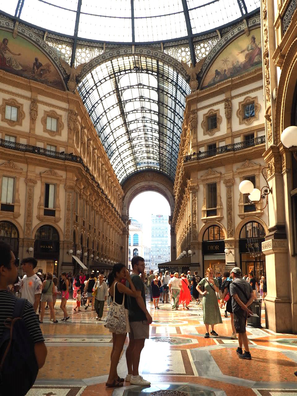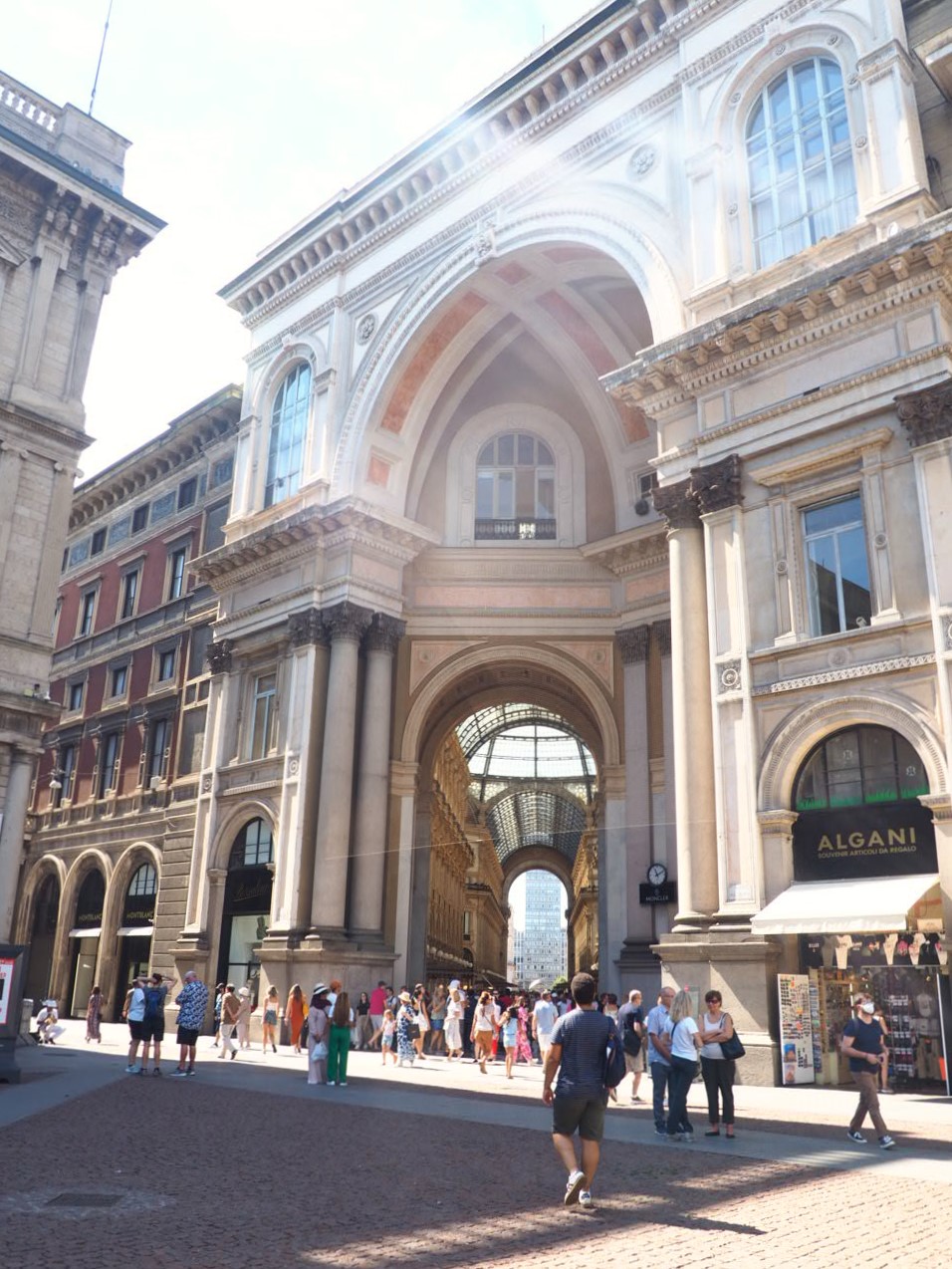 Depuis la galerie, vous apercevez la place du Dôme. Sur la gauche se dresse majestueusement la Cathédrale. De style gothique, le Duomo n’en fini pas d’attirer les foules. N’hésitez pas à la visite mais également à aller faire un tour sur les toits du Duomo !