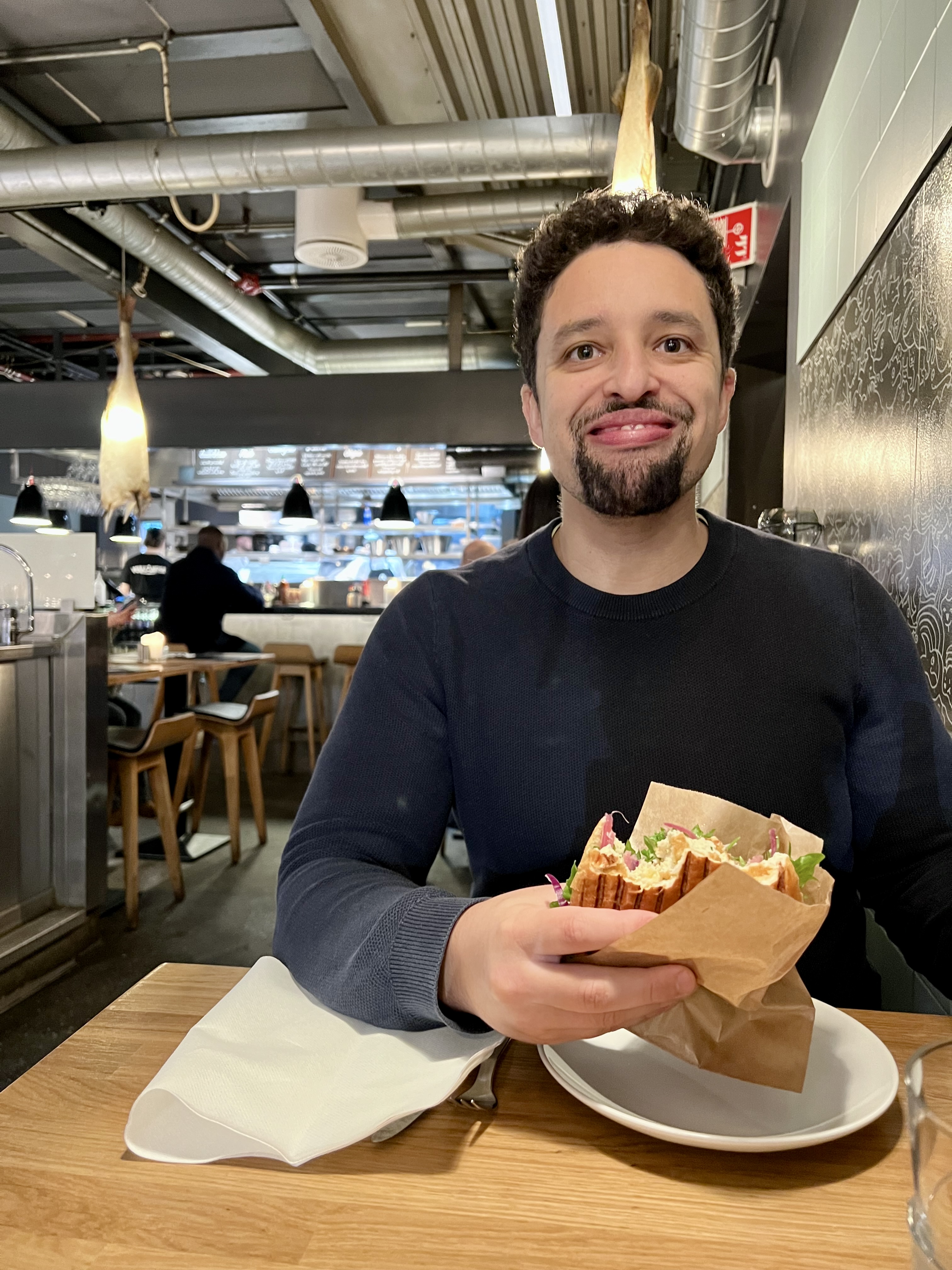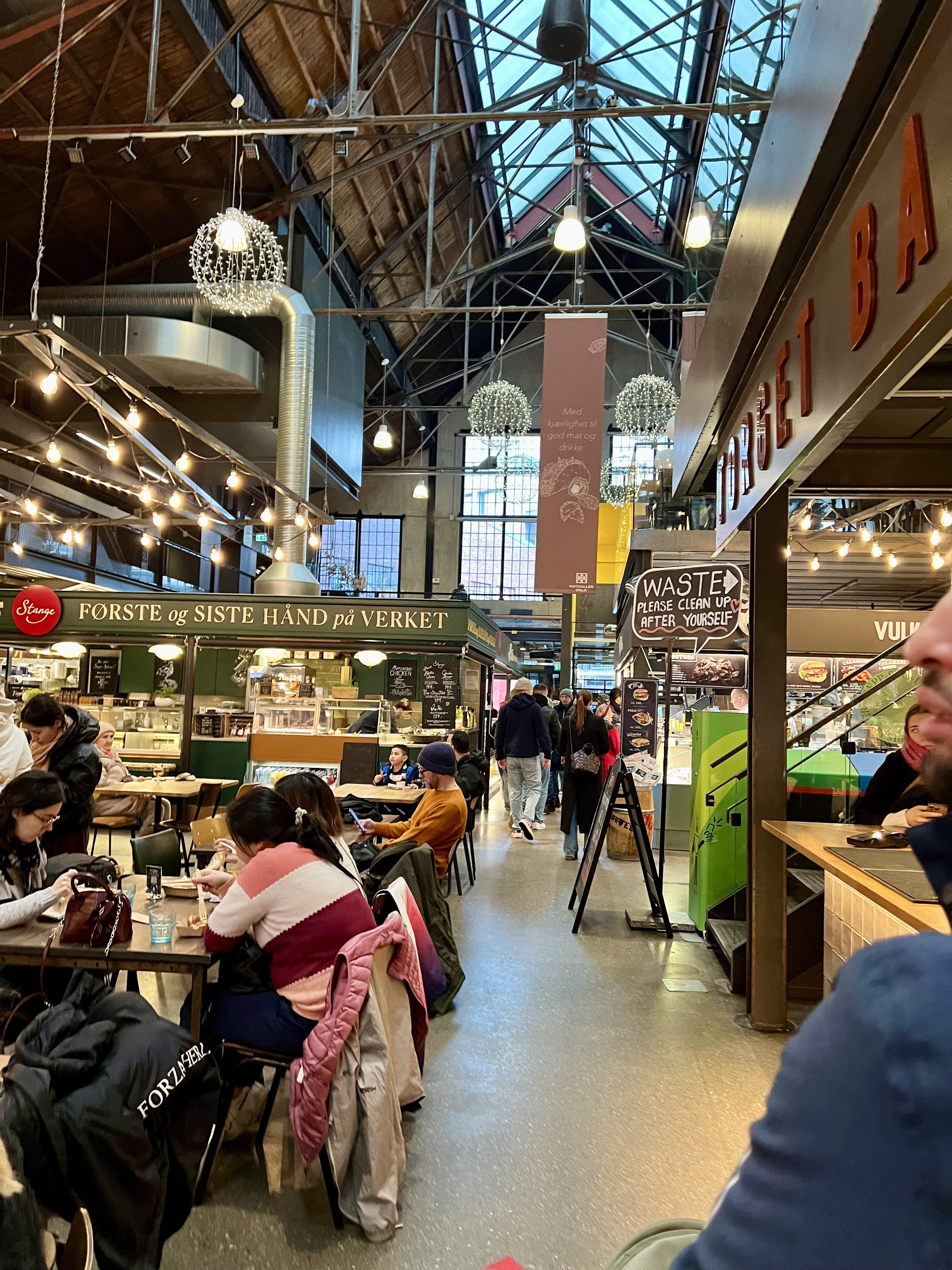 C’est un food court où on trouve beaucoup de stands internationaux, mais ça peut être intéressant ! Vous avez un boucher, Annis Pølsemakeri, qui propose de la viande avec un focus sur les ingrédients locaux et norvégiens.
