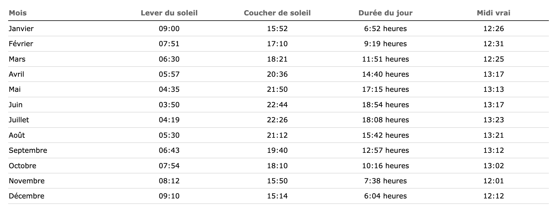 Horaires : cela dépend encore des saisons