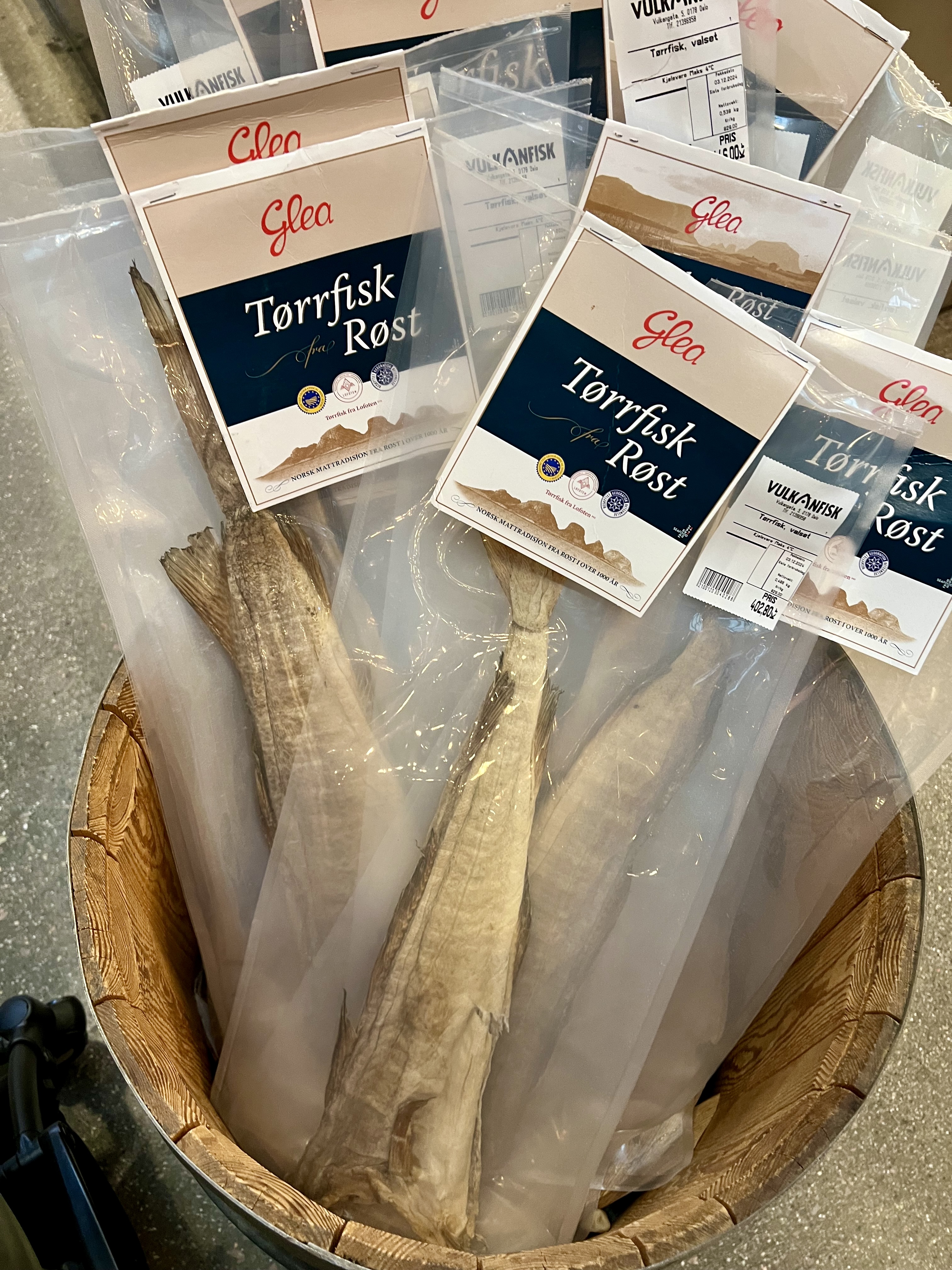 Côté poisson, on retrouve les soupes de poisson (plusieurs versions), le saumon, les huitres norvégiennes, crevettes, le hareng, le crabe, la morue mais également la baleine. Le Flatbrød, le pain plat norvégien.