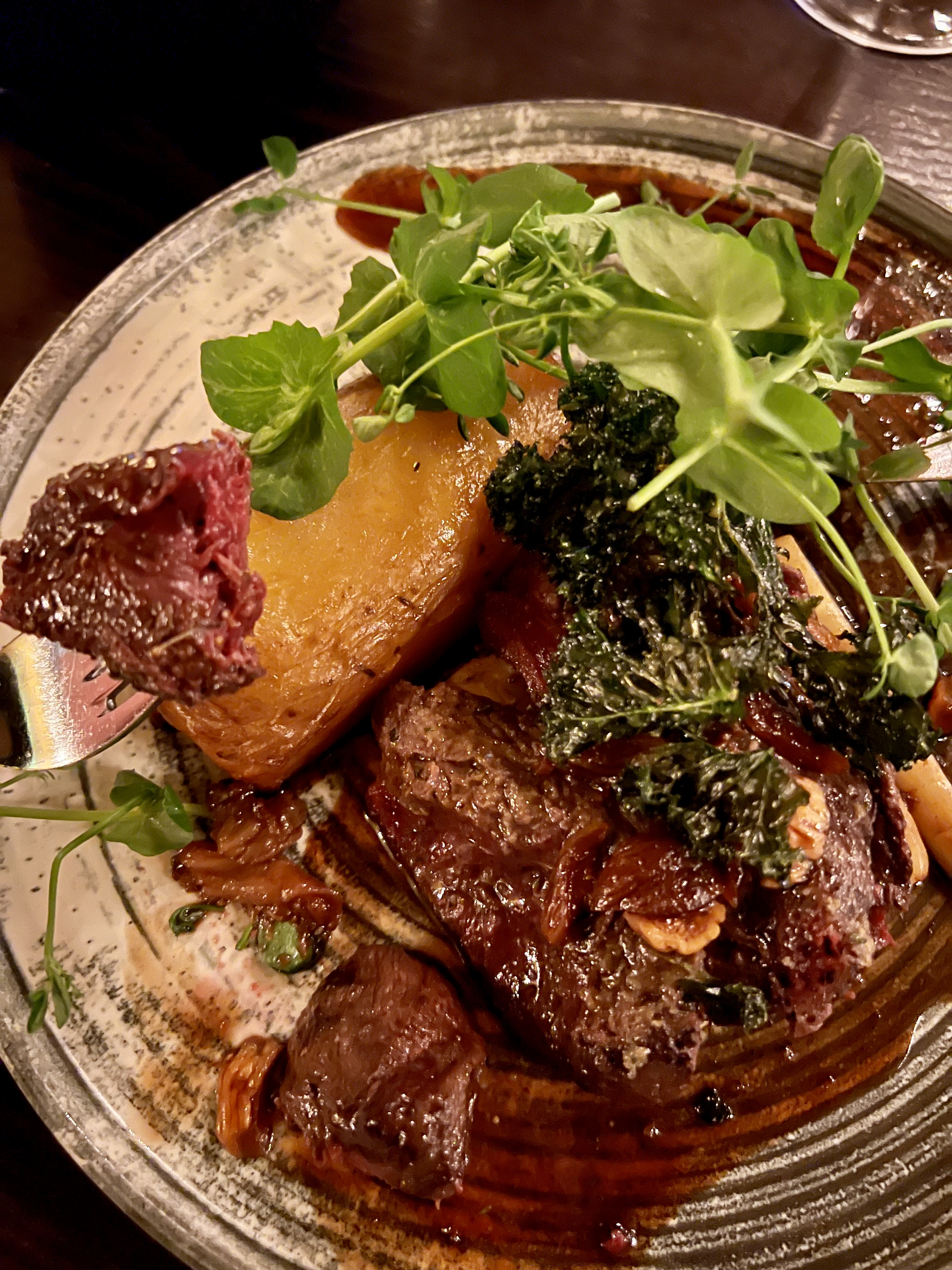 C’est un restaurant historique (depuis les année 1700) à l’atmosphère feutrée. Quand on entre, on s’y sent bien ! C’est ici que l’on a pu déguster des spécialités locales et notamment la baleine. Oui, la pêche à la baleine (une espèce) est autorisée en Norvège, tout comme au Japon et en Islande.