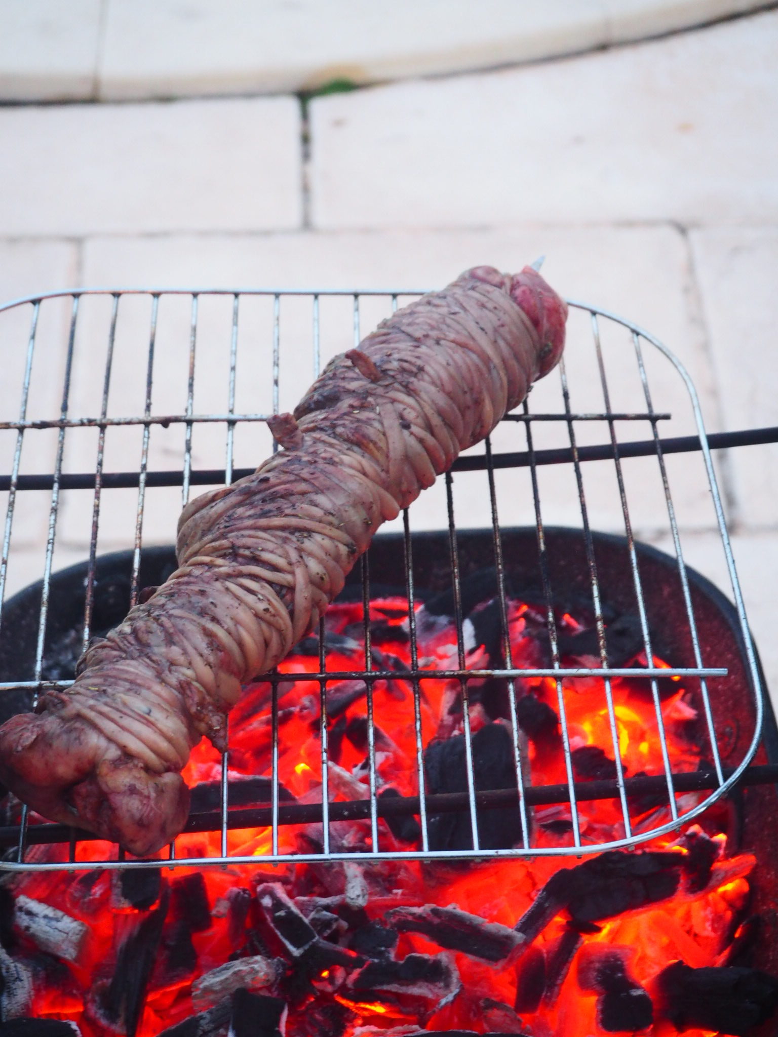 C’est un délice, surtout si on aime la viande. La rivia est fabriquée à partir des abats de cabris ou d’agneau, entourée de crépine. Ces brochettes sont grillées au feu de bois sur des pics, badigeonnées de vin et de thym, une sauce que l’on nomme la Salamudia.