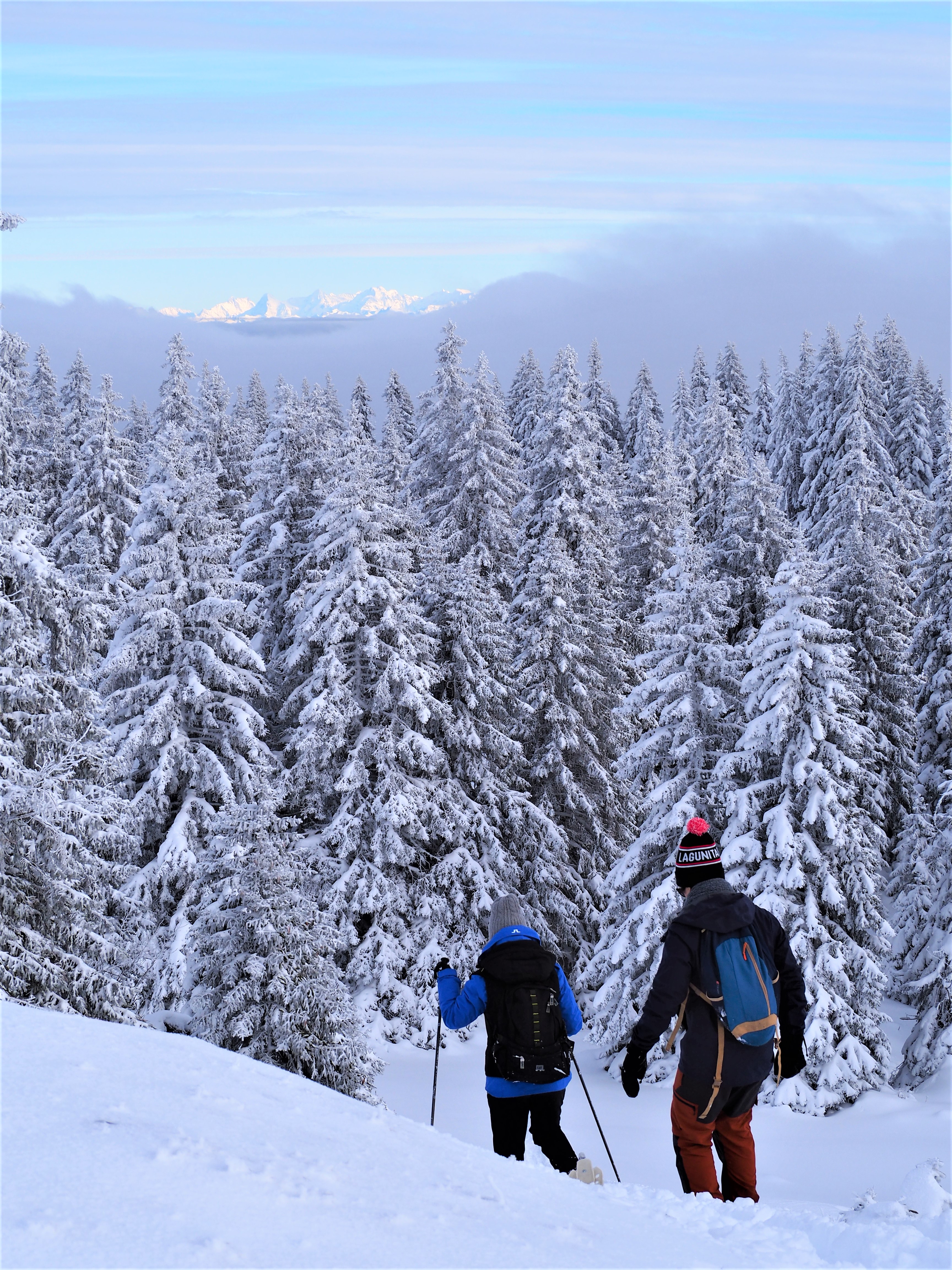 On est monté en groupe, certains équipés en skis, d’autres avec des raquettes. N’étant pas équipé de raquettes, on les a louées chez Sport Discount à Lausanne, un super rapport qualité/prix.