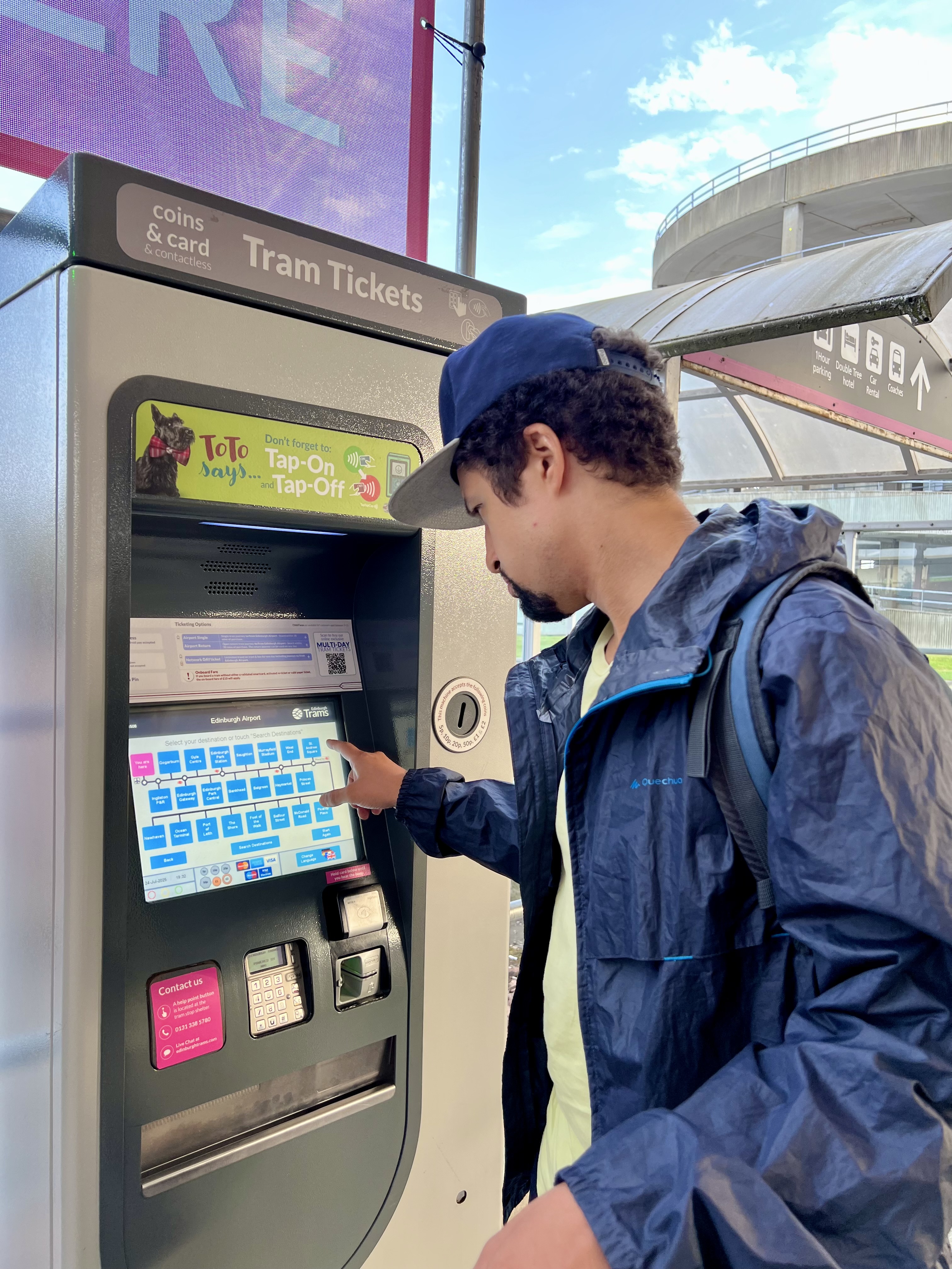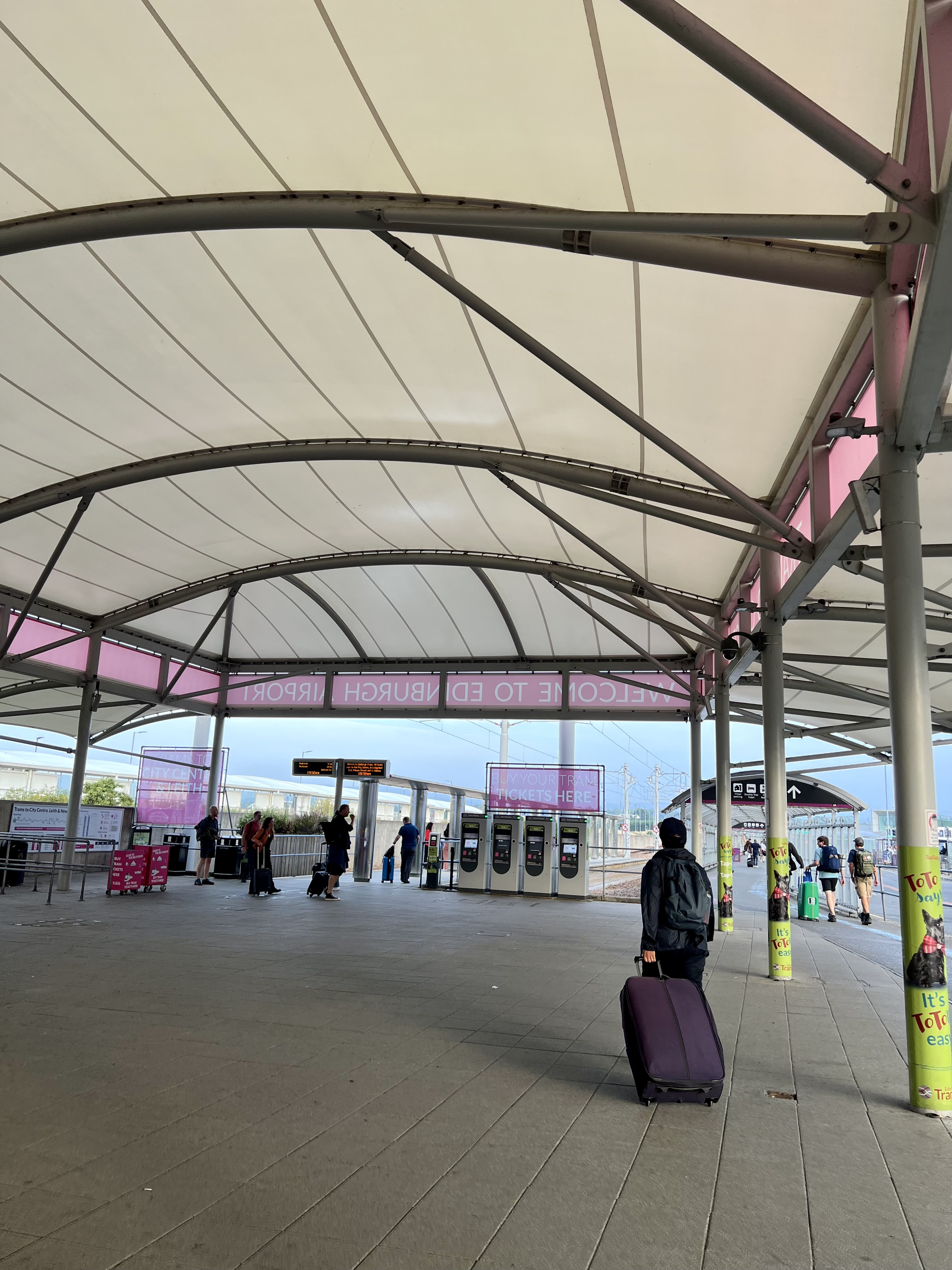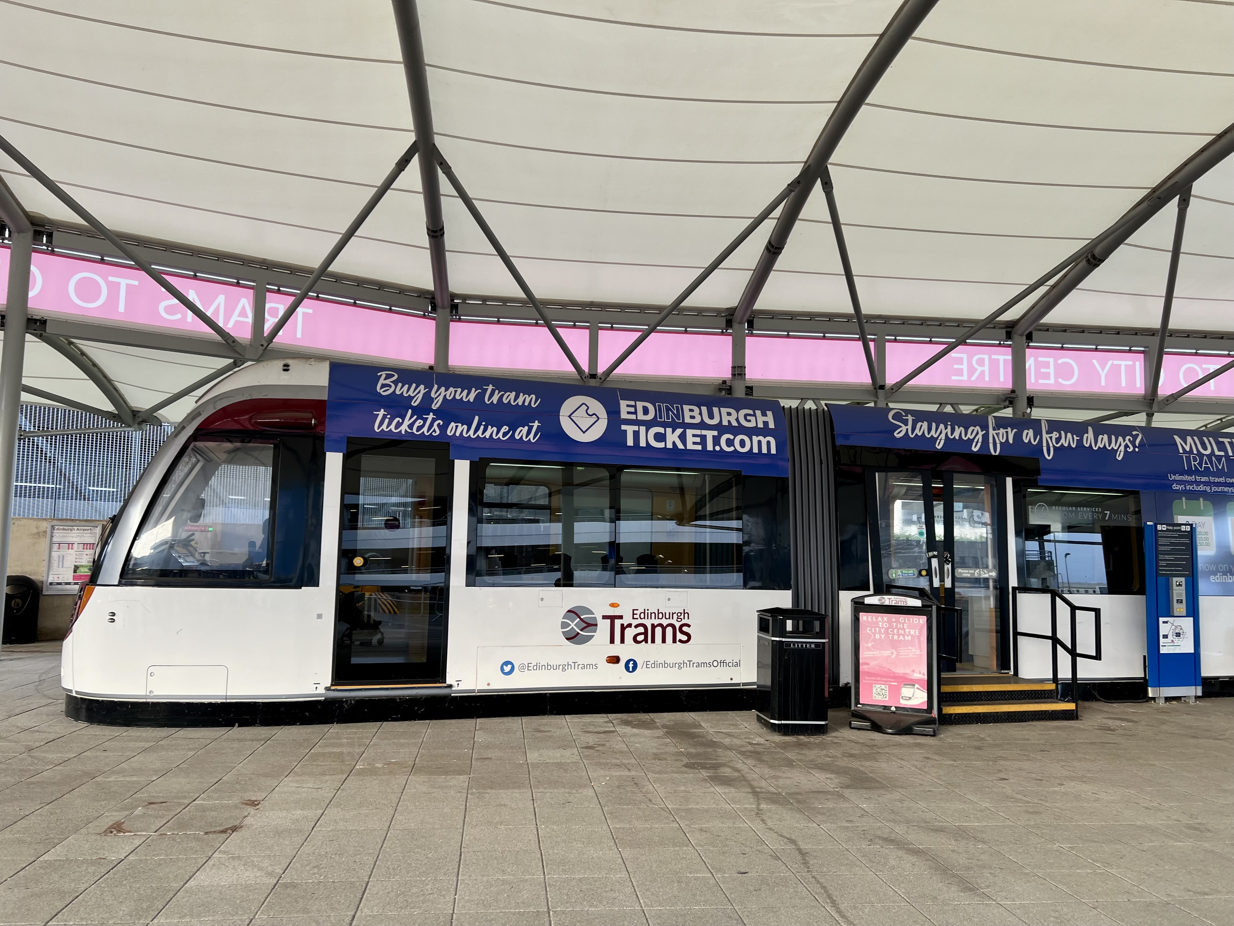 L’aéroport est petit et il est facile de s’y retrouver. Le Tram se rend à Edimbourg très souvent – toutes les 7 minutes, 10 minutes en heures creuses. Vous pouvez acheter vos billets sur place ou en ligne avec Edimburgh Trams.