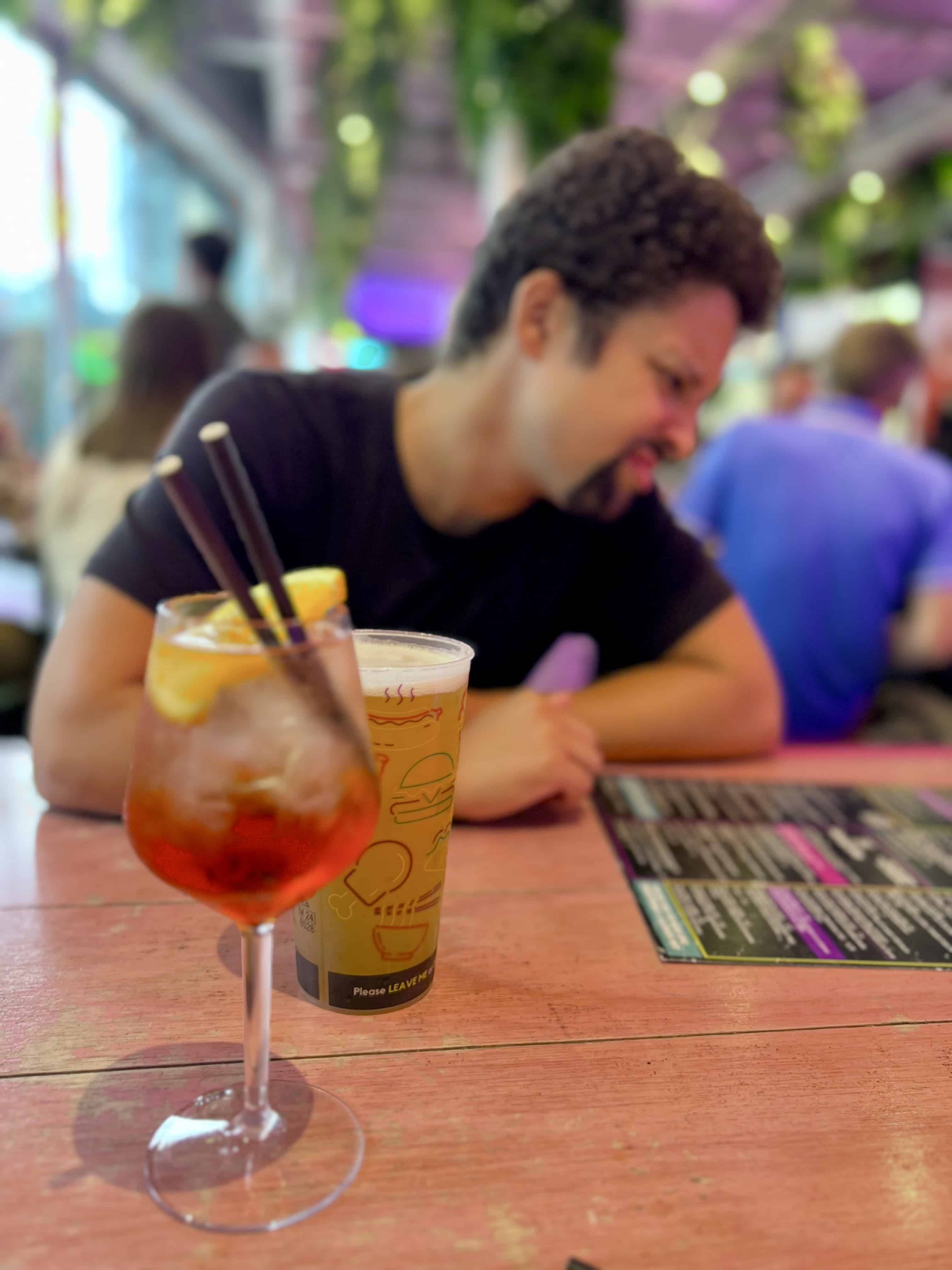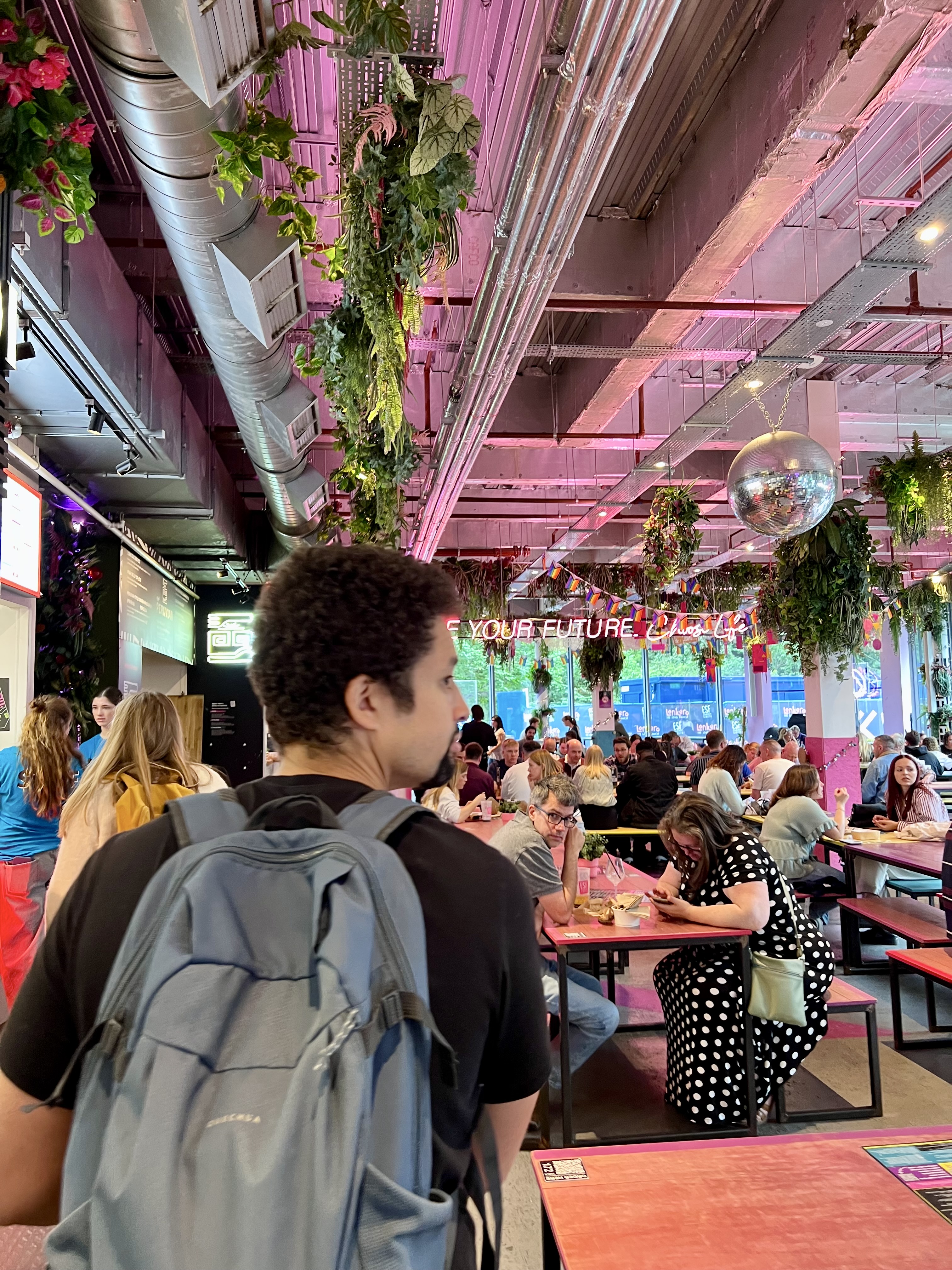 Un grand hall avec plusieurs stands internationaux de nourriture et des bars pour boire des verres ! Une belle ambiance où se mélangent salariés, étudiants et touristes.