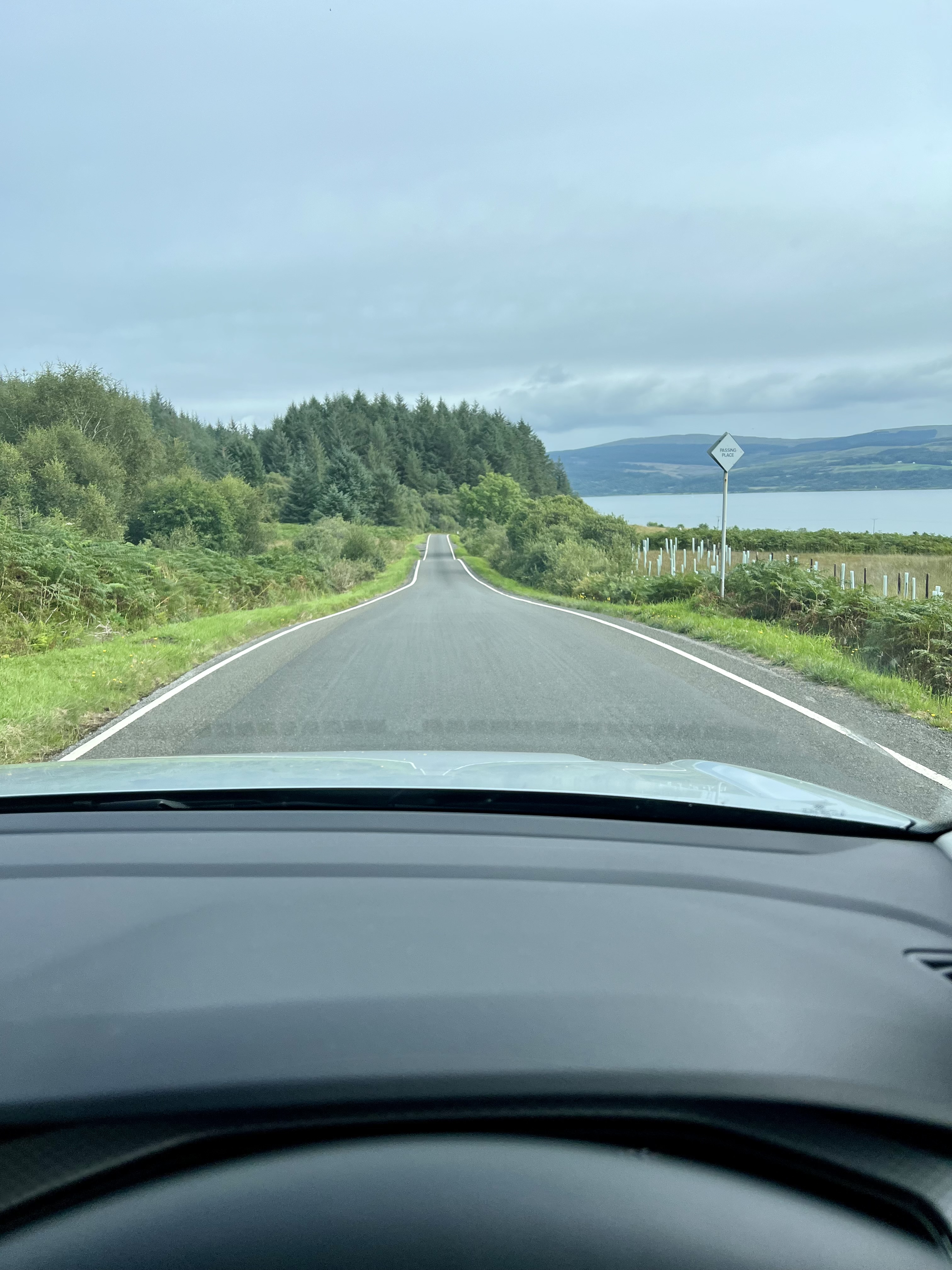 On s’est baladé sur la péninsule nord de l’île en voiture. Les routes sont, le plus souvent, à une seule voie. On ne passe pas à deux, c’est pourquoi des « passing places » (renfoncement sur le côté) ont été aménagés pour laisser passer un autre véhicule.