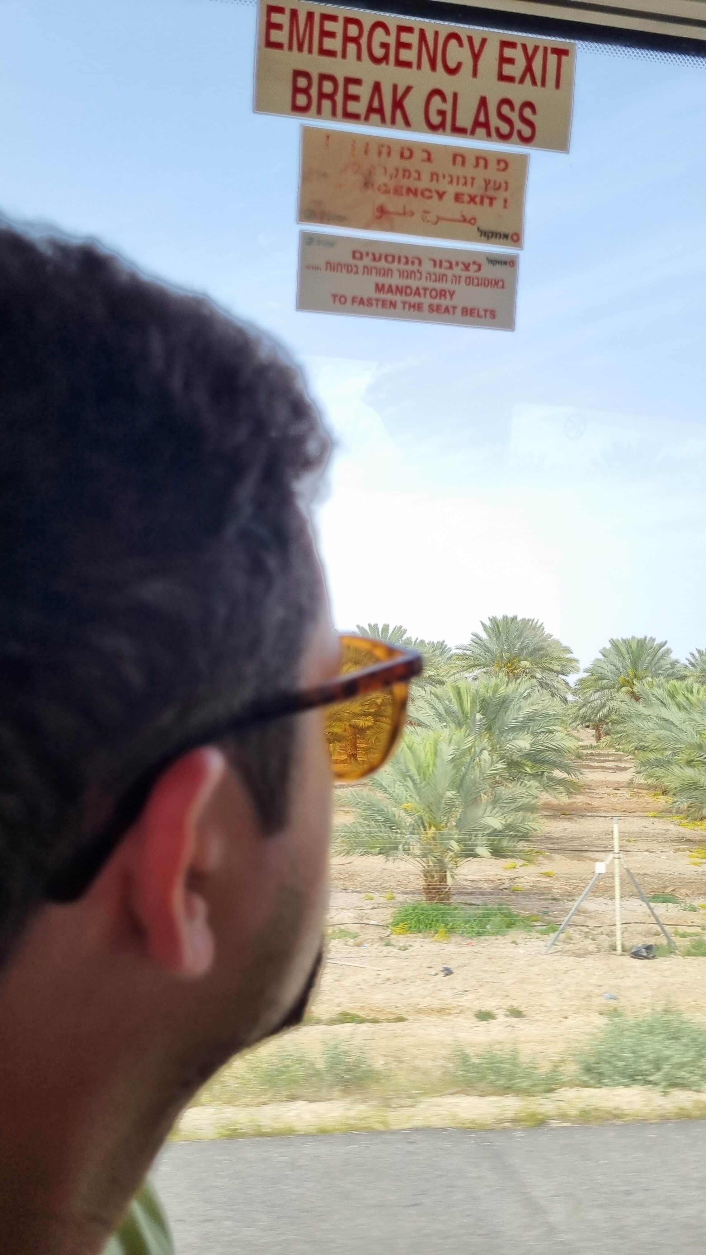 On aperçoit aussi les champs de palmiers dattiers ! Israël reste l’un des plus grands exportateurs de dattes au monde.