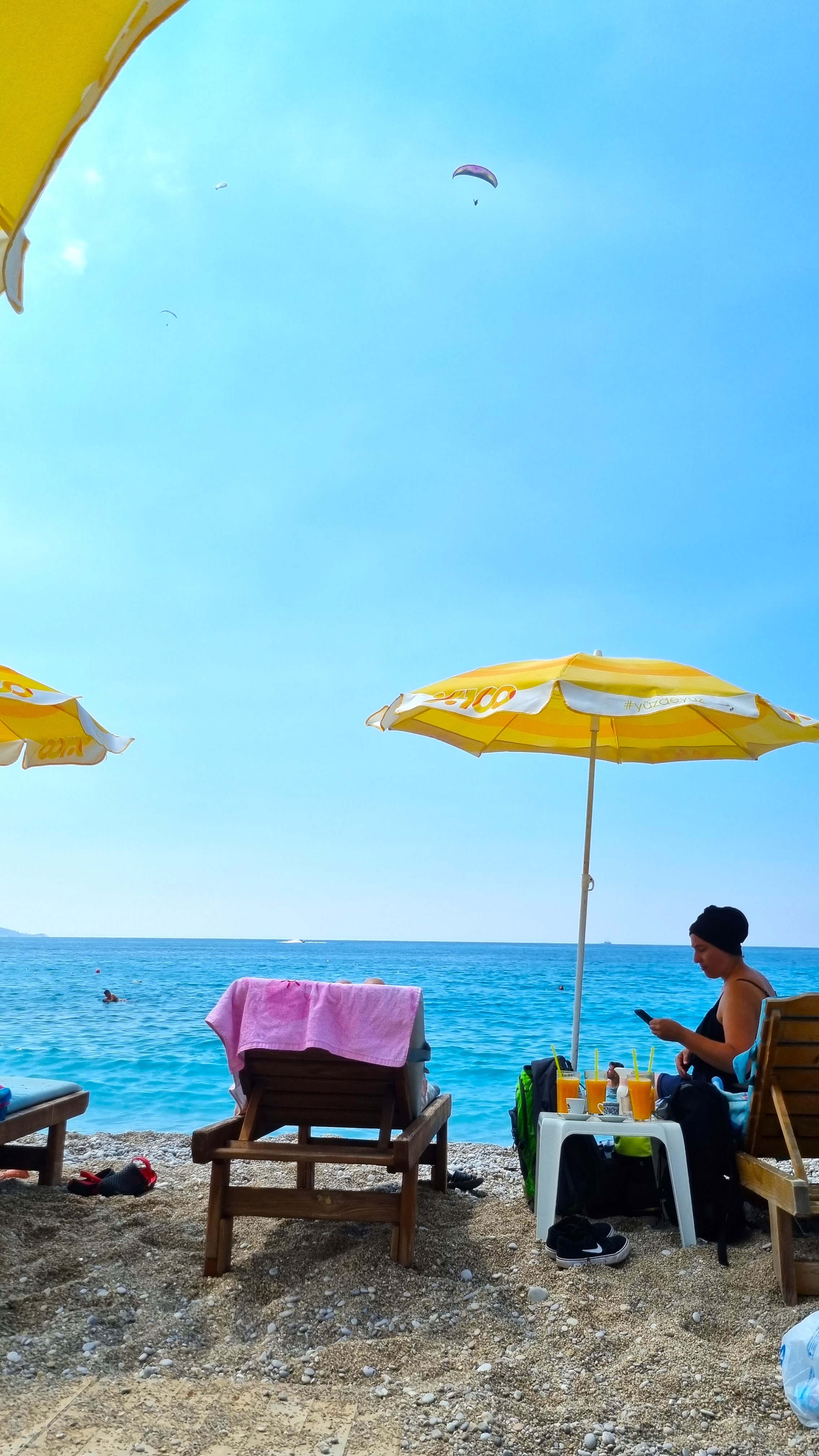 ⛱️ Calis beach, plage de galets près de notre hôtel, avec vue sur la baie