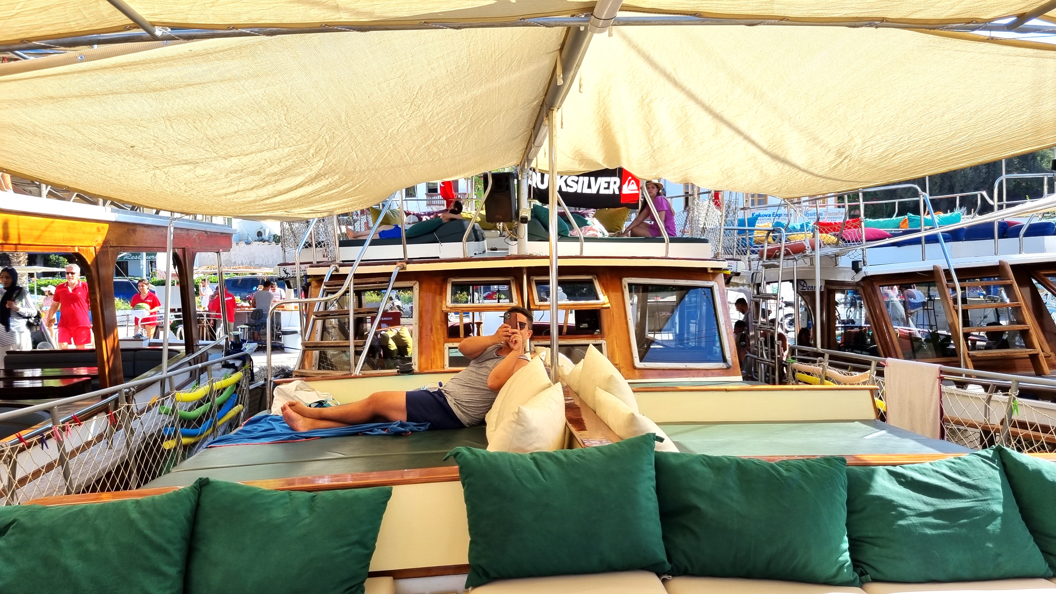 On a choisi la compagnie Kashholiday et le bateau Bermuda Boat ! Le bateau en lui-même est très chouette, bien aménagé et pas trop grand donc seulement un maximum de 40 personnes peuvent monter à bord. Les places/matelas sont très grandes, l’espace est aéré entre les uns et les autres. L’ambiance est chill et les repas servis sont excellents !
