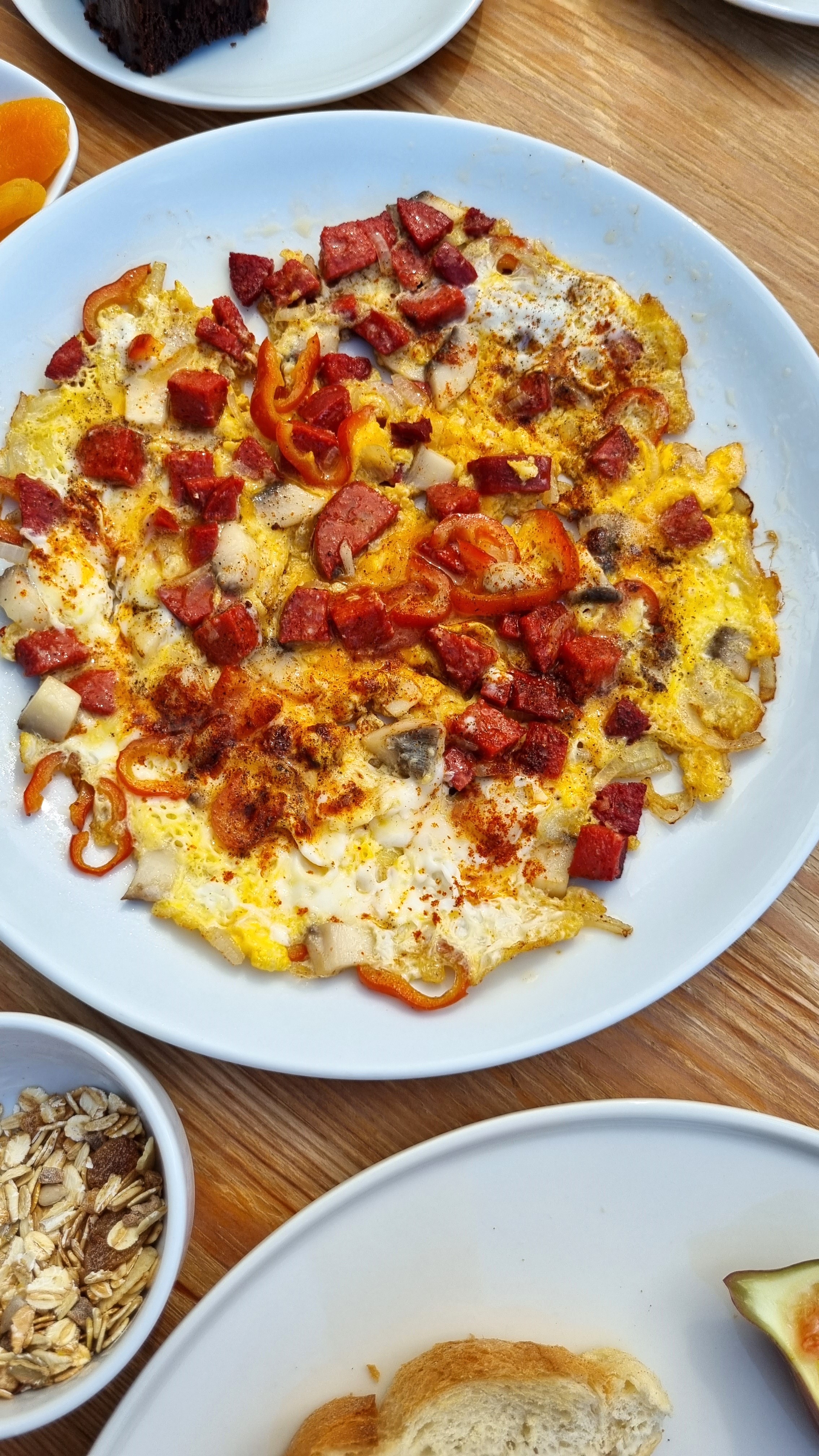 Excellent petit déjeuner, comme vous pouvez le voir ci-dessous. Sur la gauche, c’est la fameuse omelette turque, le Menemen, un plat traditionnel qui comprend des œufs, des tomates, des poivrons verts et des épices. Un régal !