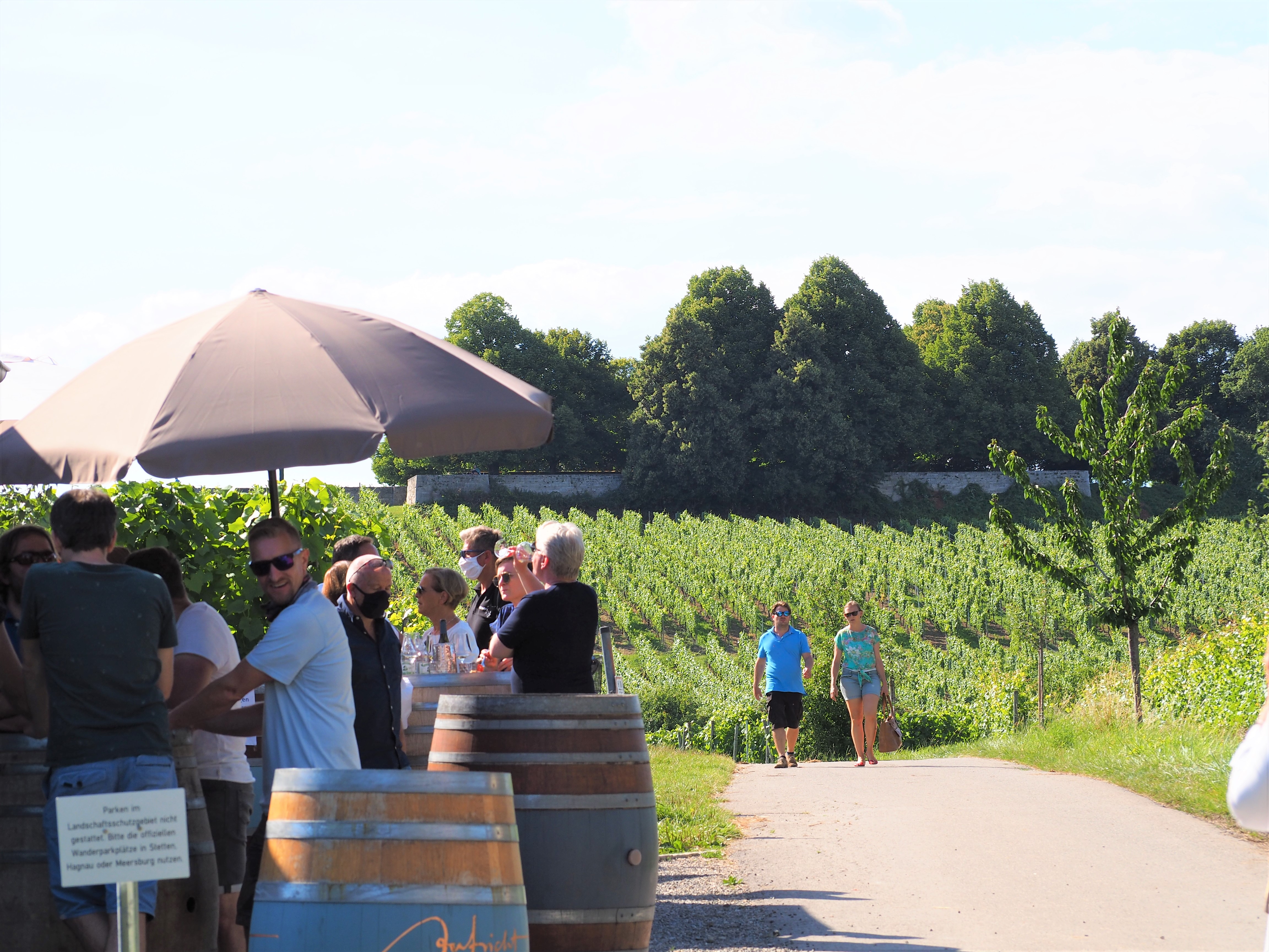 J’ai été me promener dans les vignobles de Aufricht et boire un verre dans leur bar/restaurant éphémère : Fräulein Seegucker. C’est vraiment très agréable de se poser dans le bar du vignoble pour déguster leurs vins et profiter d’une très belle vue sur le lac. Jugez par vous-même 😉