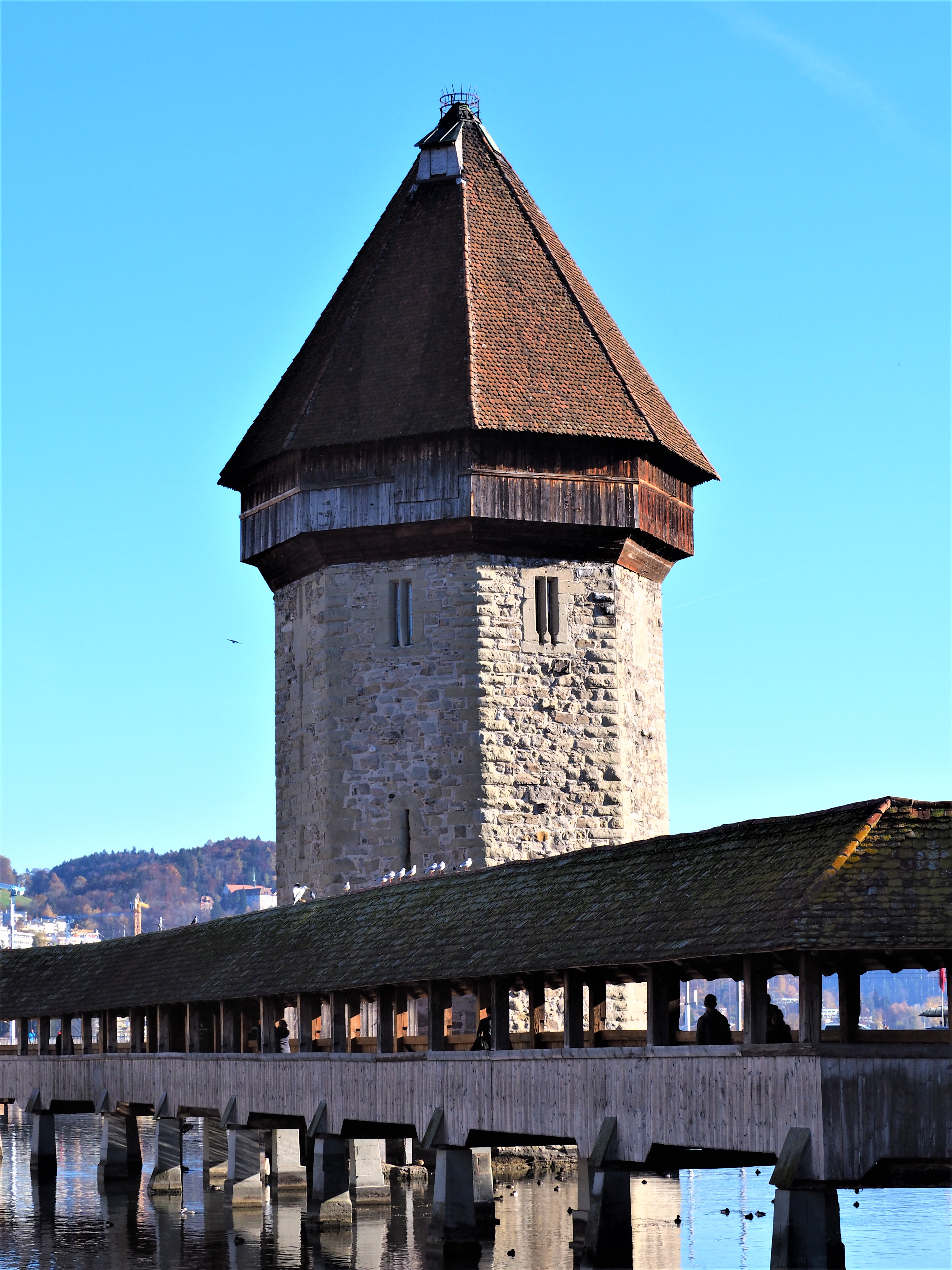 Attelée au pont, vous trouverez le château d’eau, une tour octogonale de plus de 34 mètres de haut construite également au 14ᵉ siècle. Elle a d’ailleurs servi de prison et de chambre des tortures. De nos jours, elle abrite le quartier général de l’Association de l’artillerie Lucernoise.