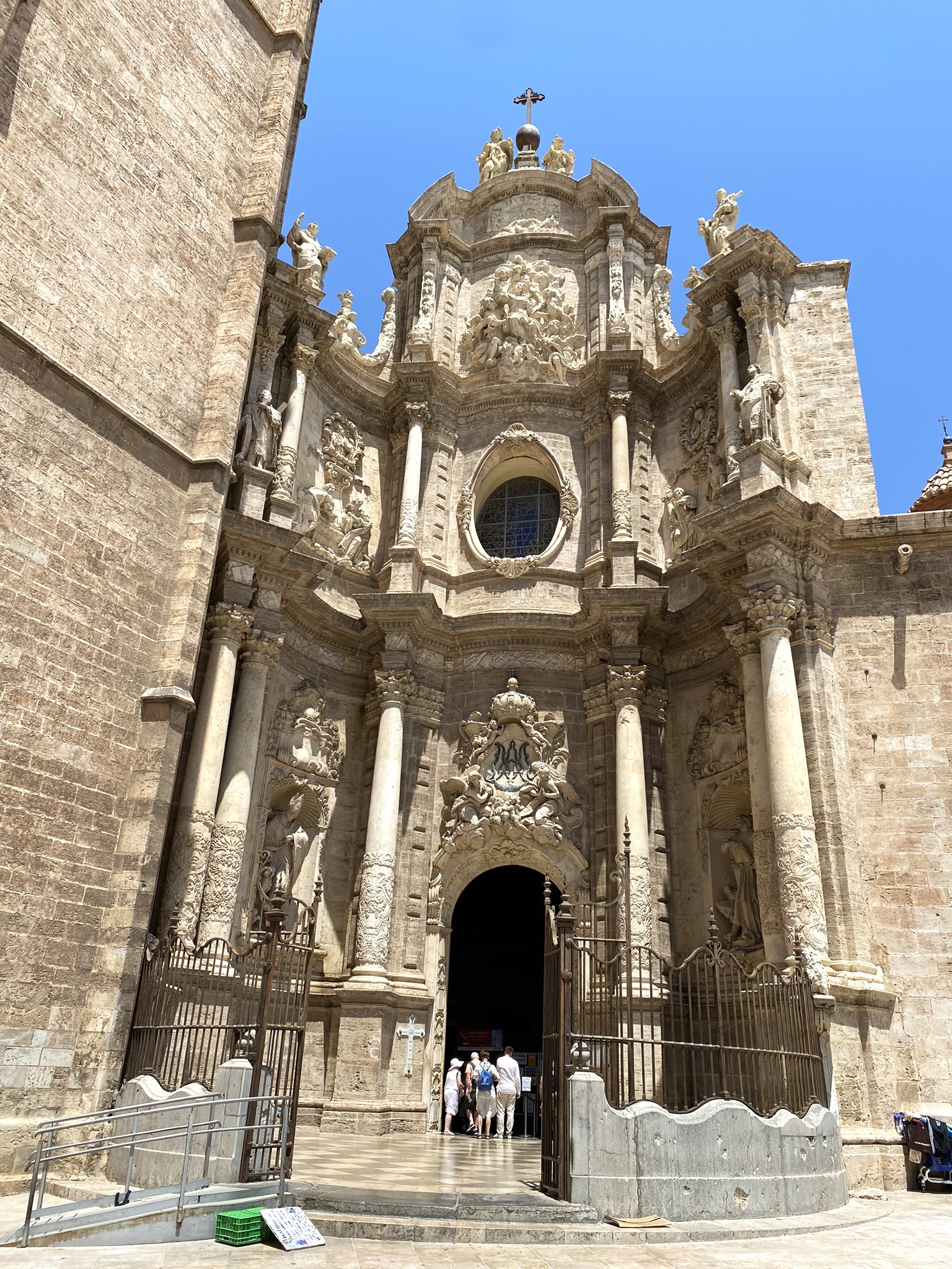La Cathédrale de Valencia a été construite sur un ancien temple romain. Plus tard elle deviendra une mosquée – Il ne reste que l’une de ses portes qui atteste de l’histoire – les habitants ayant détruit toute trace d’invasion musulmane. A présent, elle est de style gothique mais conserve des éléments comme le roman ou le baroque.