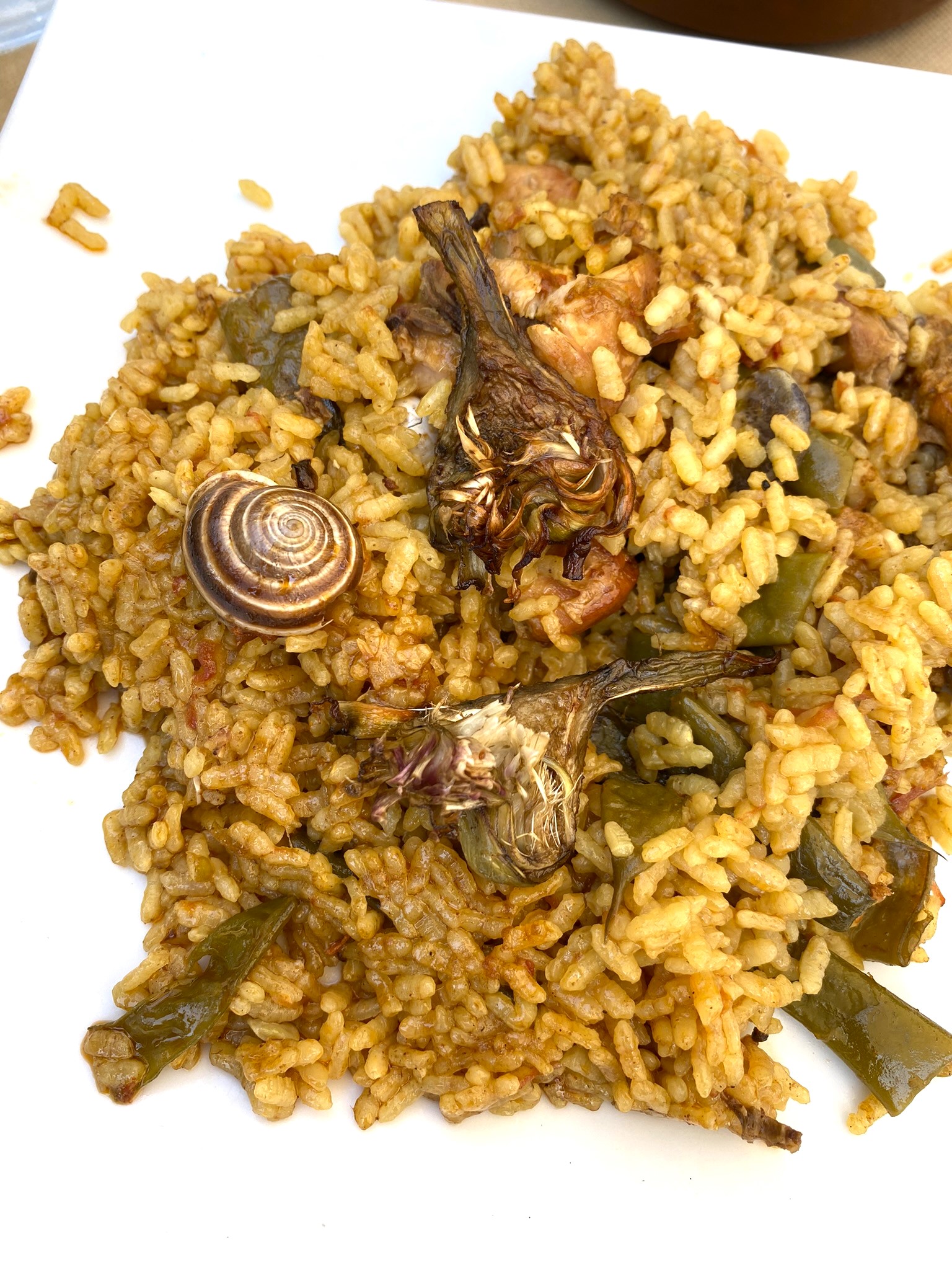Escargots, lapin et poulet sont les ingrédients qui composent la paëlla valencienne. Cela change de la paëlla à laquelle on est habitué et j’ai adoré, d’autant plus que l’on a eu la chance de la déguster fumée au feu de bois. C’est une adresse qu’un copain, qui habite à Valence, nous a communiquée. Elle reste assez peu connue encore des touristes, donc si vous souhaitez l’adresse, n’hésitez pas à m’écrire en privé.